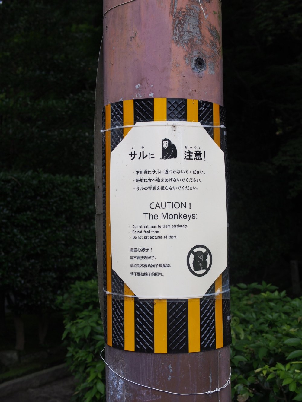 Le singe en frontispice c’est celui du Gojo, j’aime cette amulette, c’est mon symbole dans l’horoscope chinois. Tiens, j’en profite pour intégrer l’affichette sur les comportements à ne pas avoir avec les singes fixés sur un arbre du Honen In.