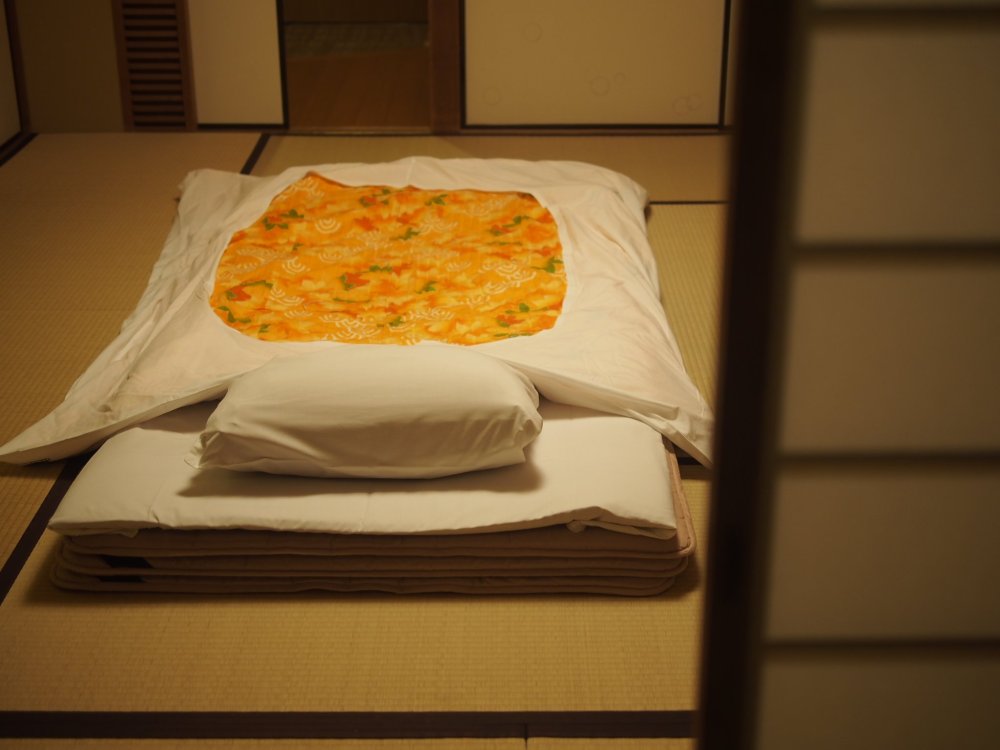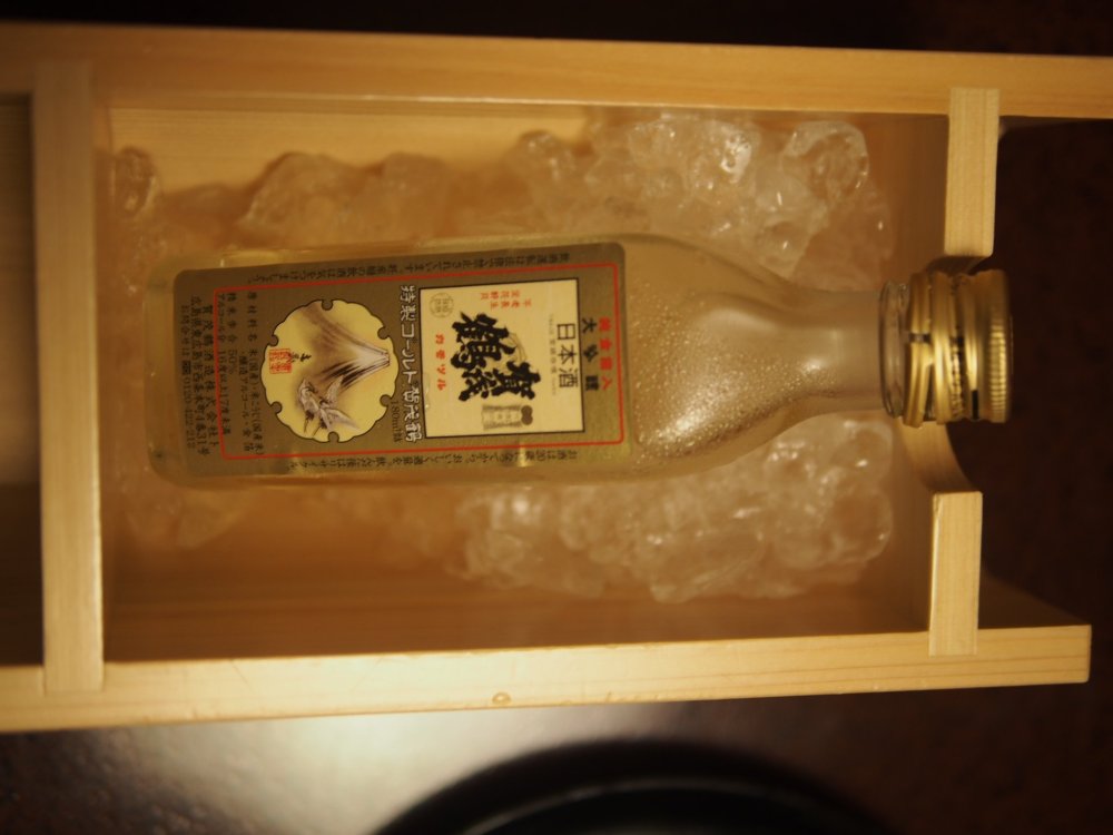 L’hôtesse m’a précisé qu’il y avait une feuille d’or dans la bouteille de saké et qu’il fallait la boire car c’était bon pour la santé. Je sens que je vais me transformer en or cette nuit…