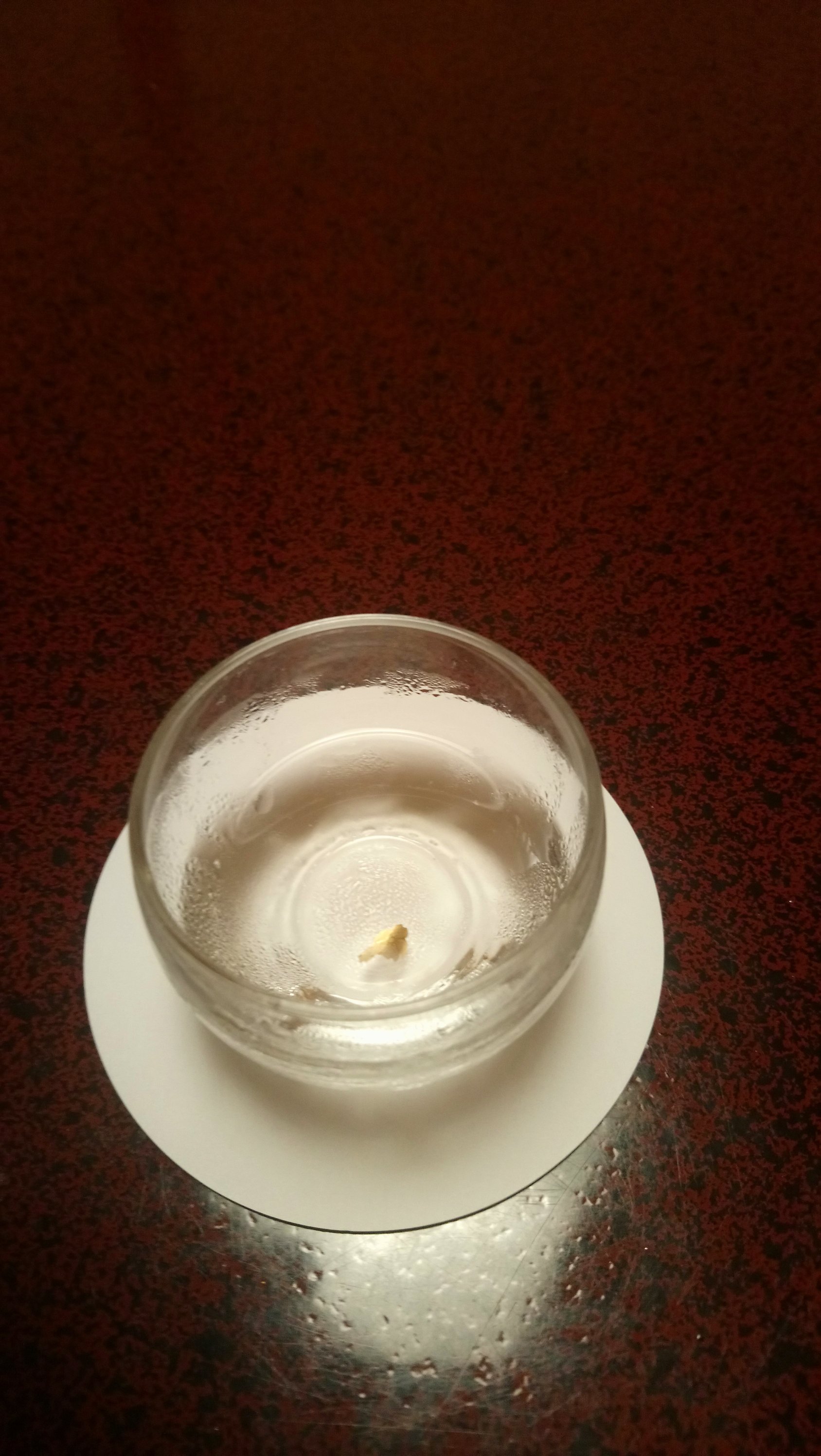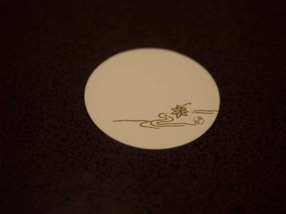 Ceci est le rond de verre qui a accueilli le gobelet de saké pendant toute la dégustation. On dirait la pleine lune, alors qu’elle n’est qu’en quart actuellement, je crois qu’elle a bu la tasse dans la mer de la tranquillité…