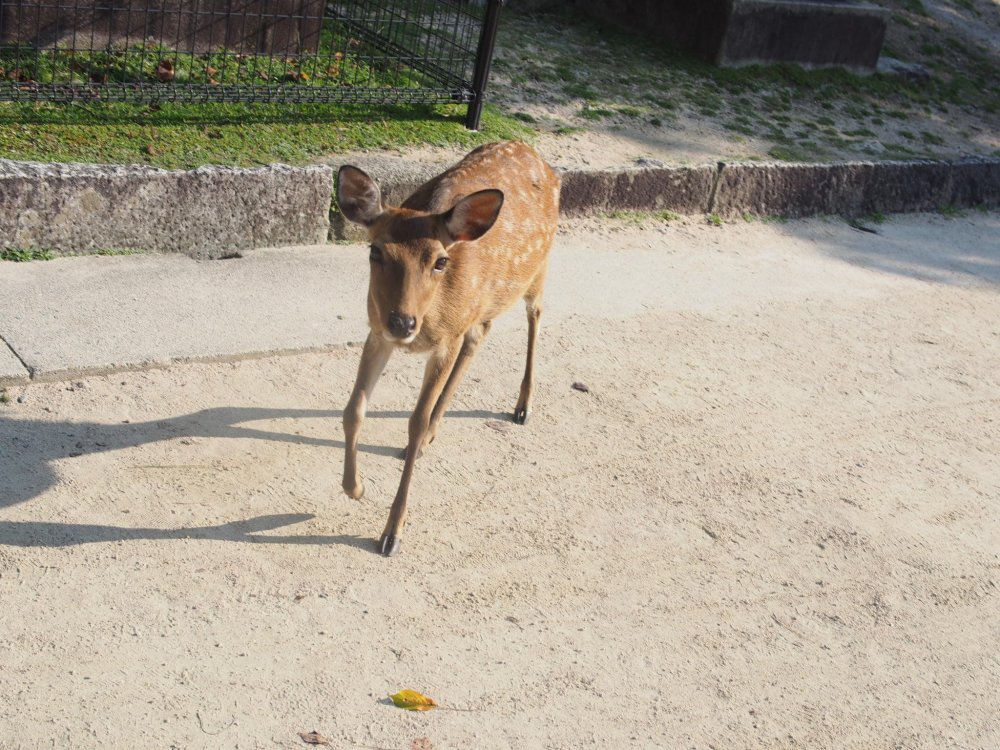 Et, puis je suis partie, et j’ai marché tout près de la plage. Le Torii me paraissait à son meilleur, les rues étaient calmes car les premiers ferries n’avaient pas encore accosté et les daims semblaient sereins hormis celui-ci peut-être le plus jeune ?