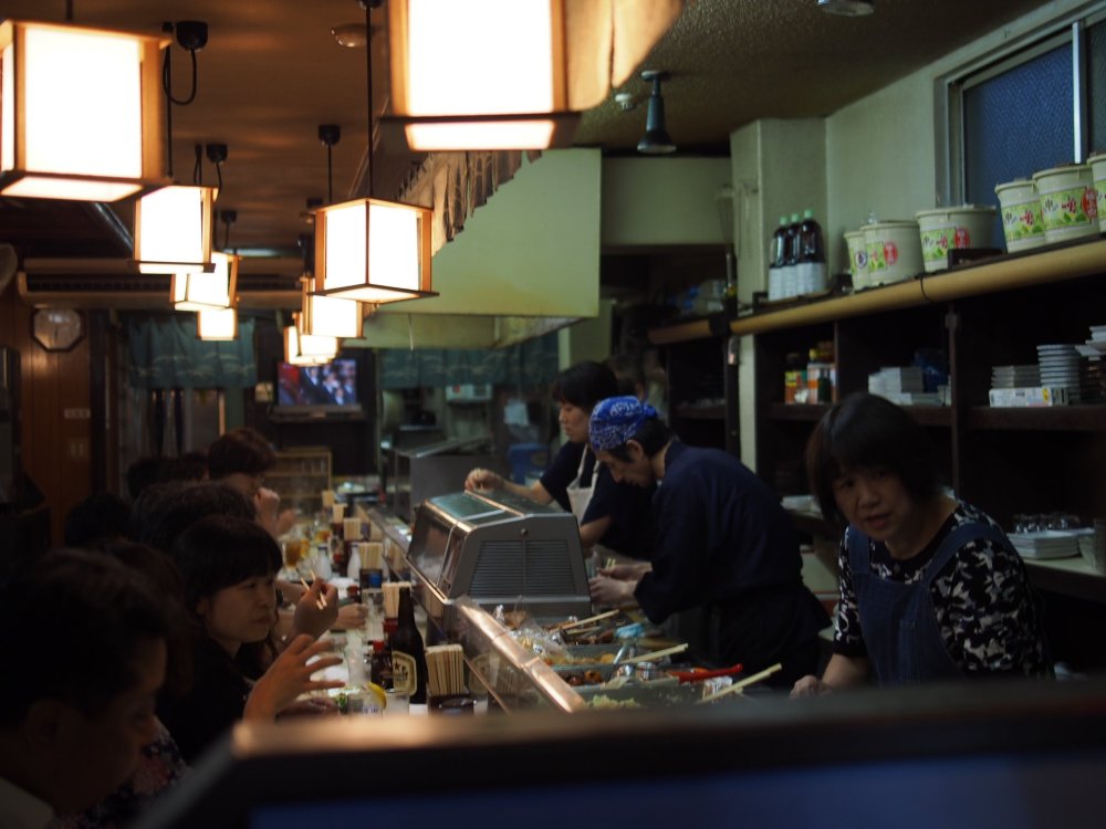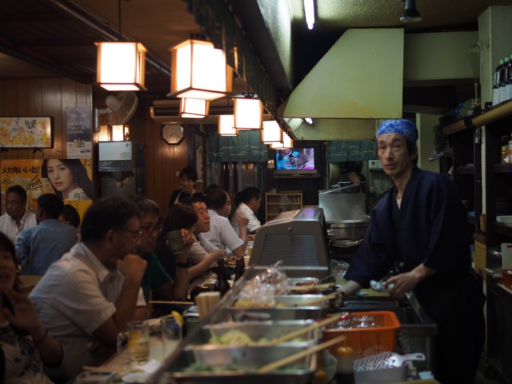 La bouilloire à thé la plus énorme que je n’ai jamais vue. Ils étaient 6 à s’activer derrière le comptoir entre service et cuisine. Pour tenir il y a celles et ceux qui carburent au thé et les autres qui préfèrent le saké…