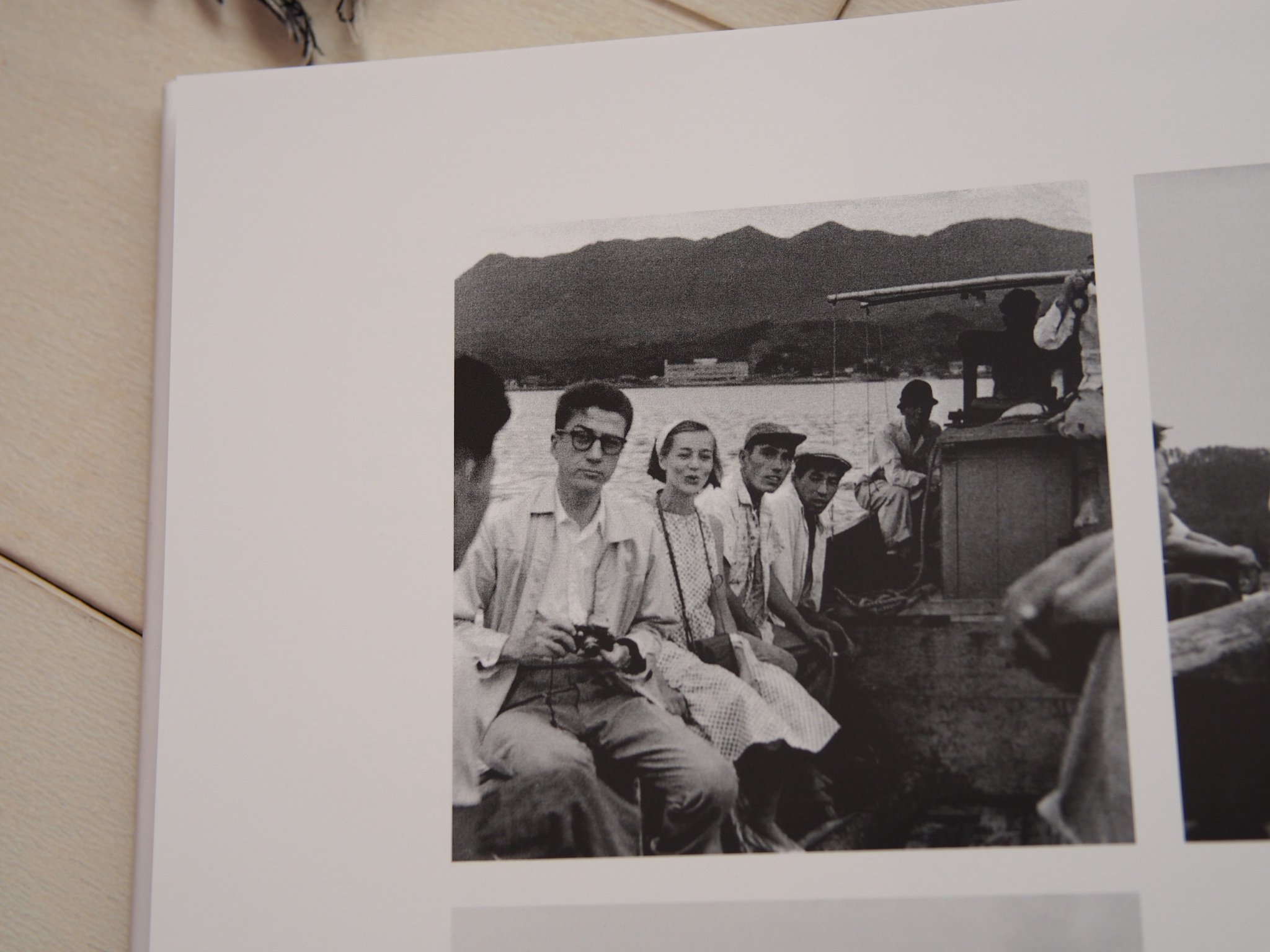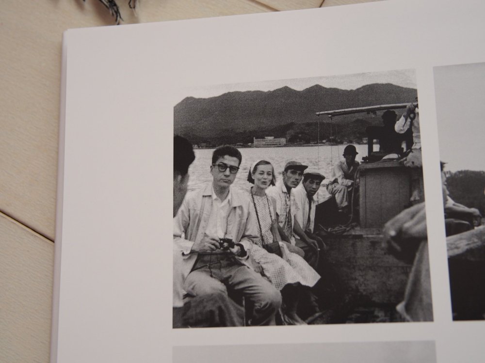 Et, là, c’est la claque, le choc, les photos en noir et blanc sont prenantes et composées de portraits et de paysages sur le mode documentaire, et surtout, à la fin du livre, la surprise m’emporte, il s’agit de photos du tournage du film de d’Alain Restais « Hiroshima mon amour « et de lettres d’Emmanuelle Riva, de Marguerite Duras, entre autres et ces lettres sont en français. Je jubile. Les libraires sont ravis, moi aussi. Je leur parle du film qu’ils connaissent, de Resnais et de son ami Chris Marker, l’ami aussi de Simone (Signoret) sur laquelle il a signé un très beau documentaire. Outre le fait qu’ils avaient fréquenté le même lycée à Neuilly, leur amour pour les chats était un autre trait commun.