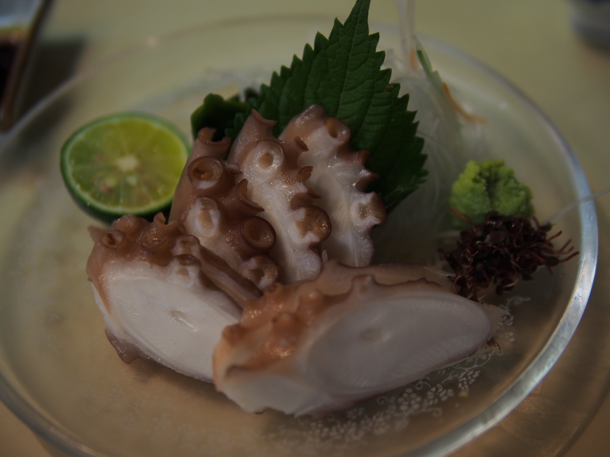 J’ai dîné un thon cru à la sauce Ponzu c’était grandiose et des petits légumes crus inconnus et de l’octopus. Waouh c’était génial. La patronne m’avait à la bonne.
