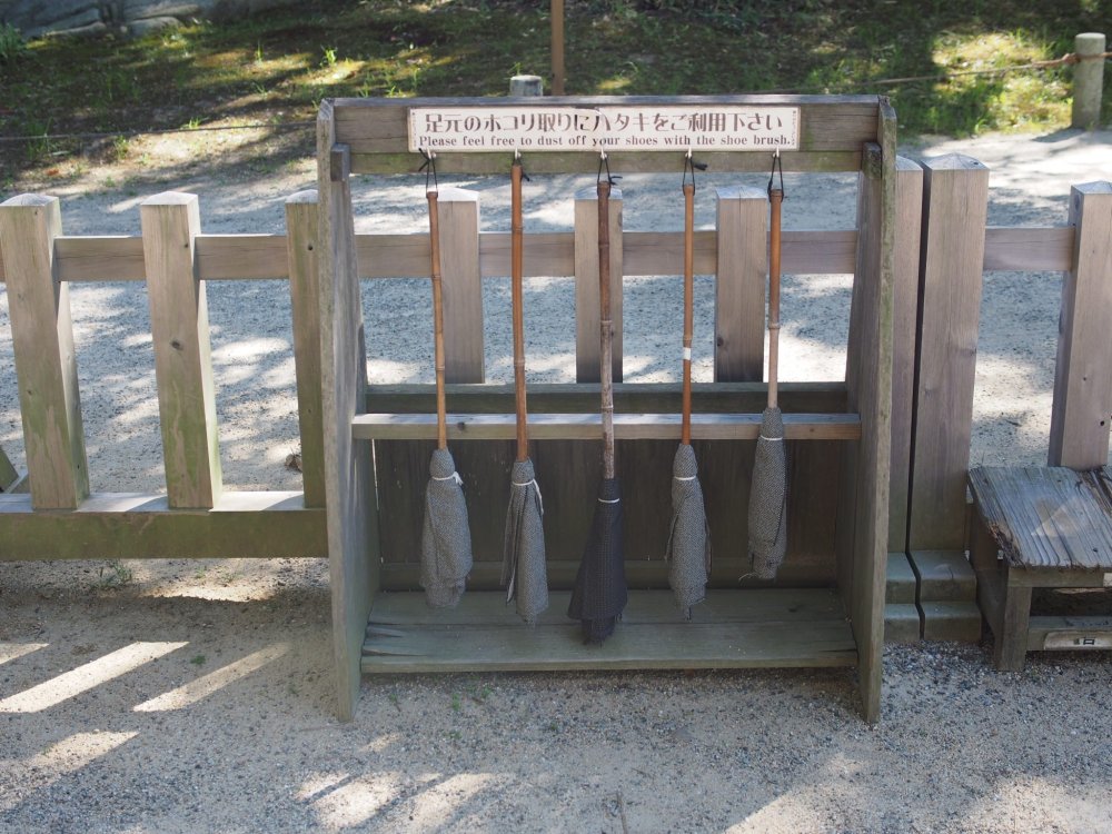A l’entrée du parc, pour ceux qui sortent, les plus courageux, et coquets, il est possible de passer, soi-même, un coup de balai chiffon sur les chaussures, pour se dépoussiérer le cuir ! Élégance et raffinement…