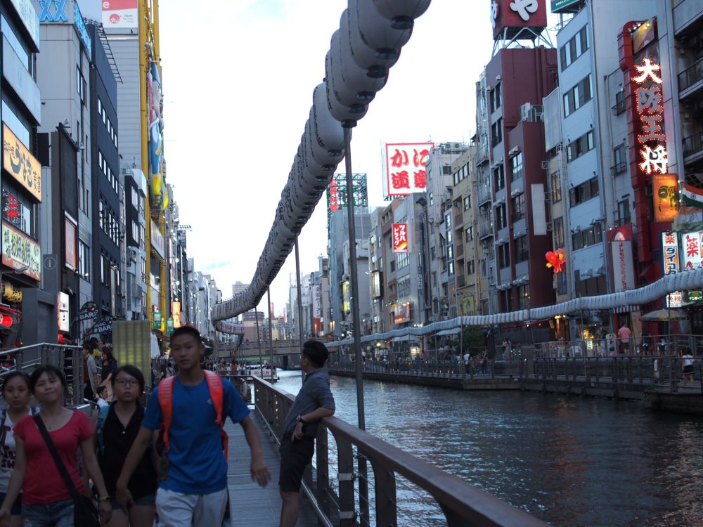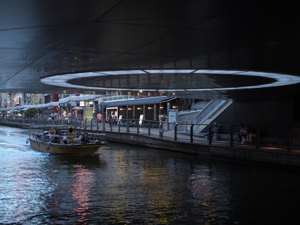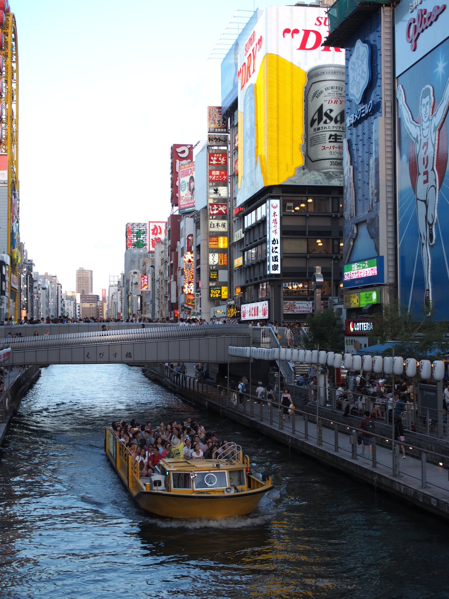 Et comme j’étais dans le coin, je suis allée dans le quartier qui bouge la nuit, Dotonbori, une espéce de Venise moderne. Des néons publicitaires immenses, des restaurants, et des bateaux, noirs de monde, autant de raisons, ou critères qui m’invitent à la désertion !