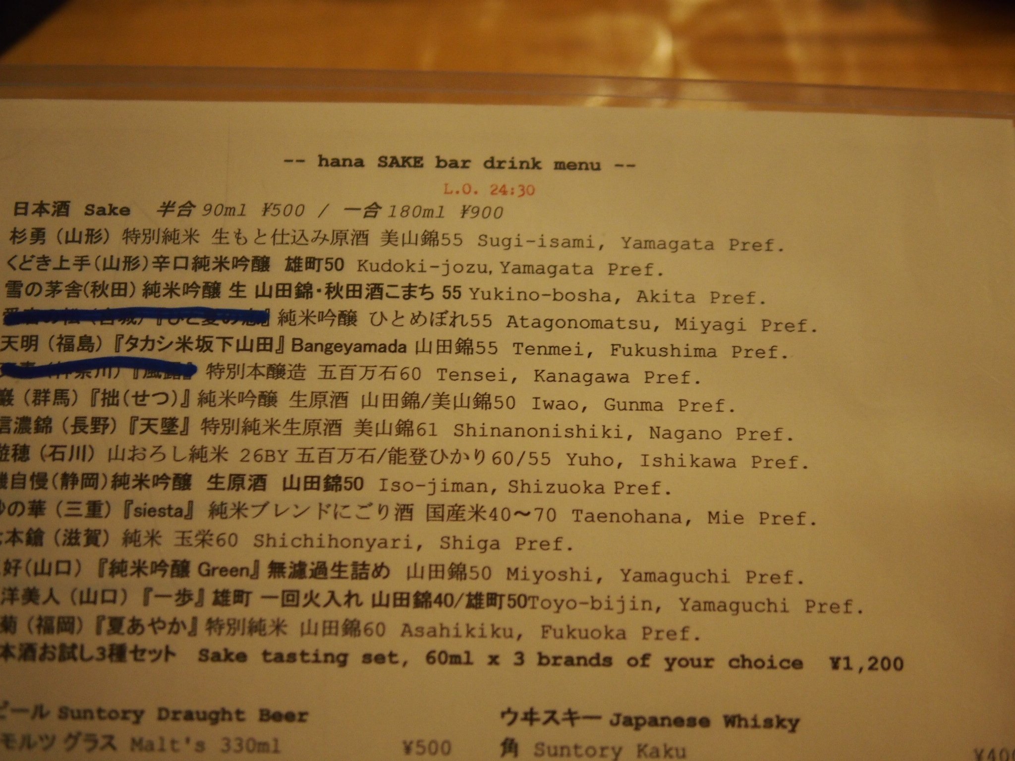 Je suit retournée dans mon quartier de jeunes révoltés, j’ai dîné et pris un sake dans un bar spécialisé. J’ai demandé un arôme fruité et un corps bien présent. Le résultat était extrêmement fidèle ! C’est le deuxième sur la liste.