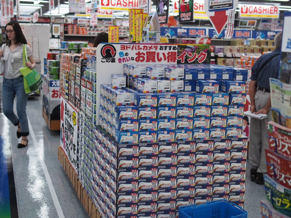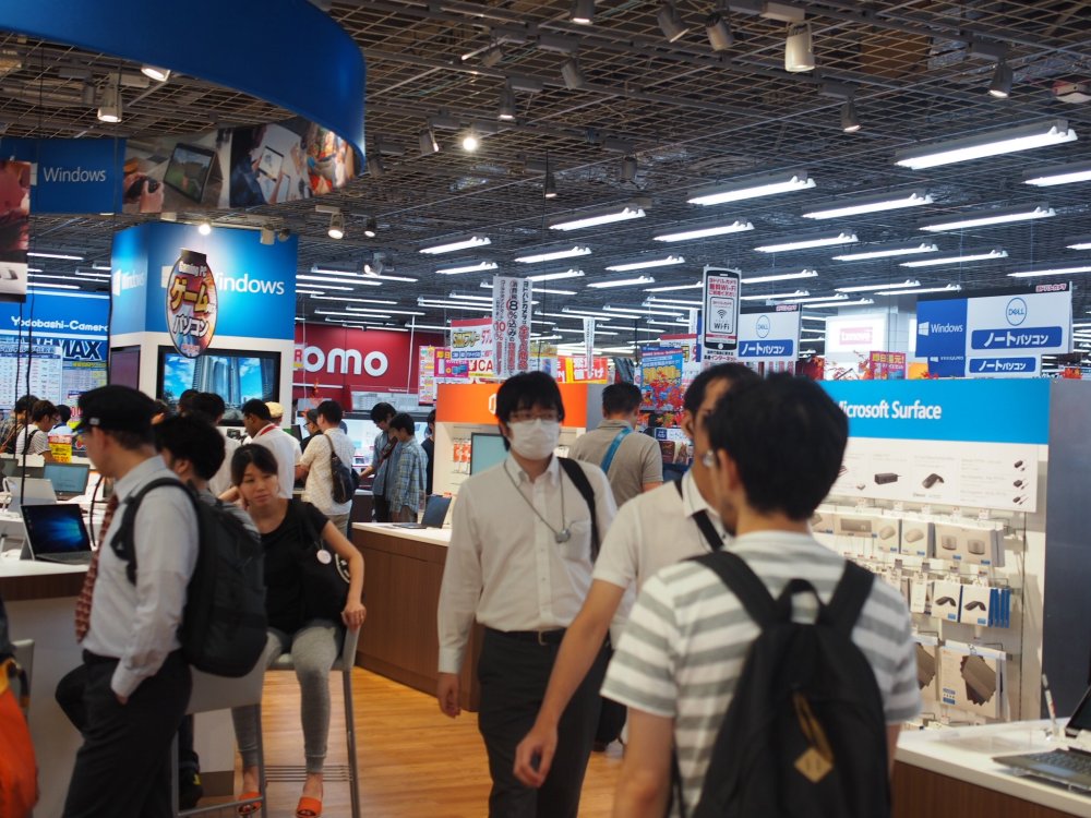 Je gardais pour la fin, le clou de la folie douce de cette journée, qui fut Akihabara. A cette station de métro, j’ai navigué au royaume de l’électronique. Imaginez un endroit immense sur x étages proposant toutes les marques de smartphone, PC, tablettes, claviers, souris, appareils photos et accessoires ou consommables informatiques du monde, et ce, en quantités astronomiques. Dans ce store, l’ atmosphère est à la frénésie, l’hystérie collective, et je me suis dit à moi-même, bienvenue dans la société de l’hyper consommation nippone à l’avant garde des nouvelles technologies. Et, j’ai trouvé mon pencil microsoft indisponible en France avant mon départ. J’étais sur un nuage flottant avec dans ma tête, plein de dessins en devenir… Je me suis assurée qu’il serait compatible avec mon système « français », no worries !