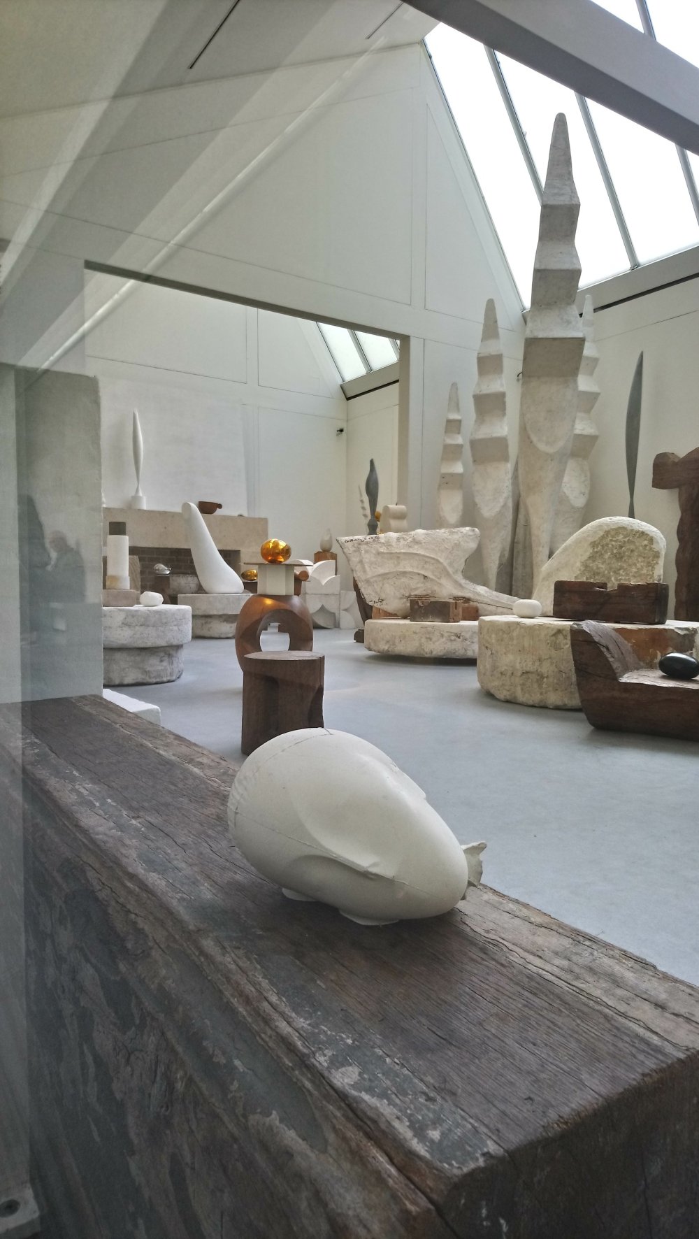 Les yeux de face et de côté, happé par la lumière zénithale, mon regard pénètre dans l’atelier de Brancusi, reconstitué à proximité du Centre Pompidou.
