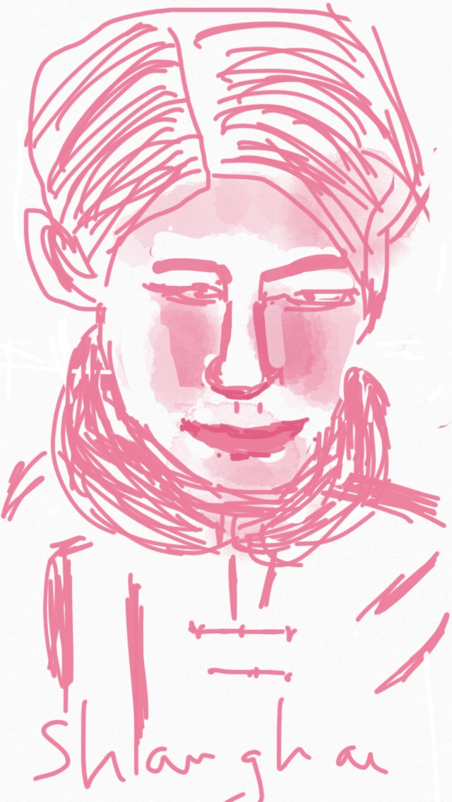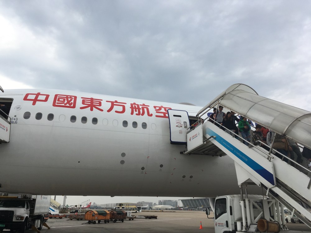 10.000 km à 10.000 mètres d’altitude à 1.000 kilomètres par heure se traduit par un vol Paris Shanghai en 10h30, décollage et atterrissage compris. Voyager avec China Eastern sur un 777 fut un long instant tranquille, peu de turbulences. J’ai eu le sentiment de flotter avec nounours, celui de Pimprenelle et Nicolas, sur un nuage. J’ai roupillé comme un loir et mes voisins quasiment tous chinois aussi. J’ai dessiné et mangé du riz et une sorte de corned-beef que m’a proposé mon voisin. C’était très relevé mais bien bon, un goût que je n’avais jamais eu en bouche ni en mémoire.
