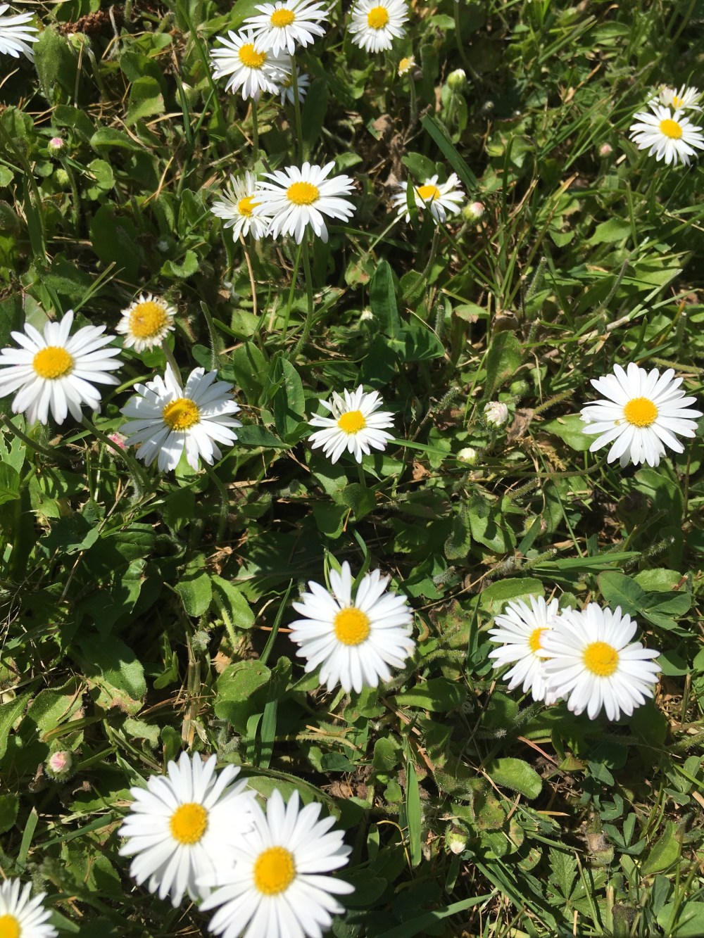 La pâquerette, au printemps, se peigne et soigne sa coupe. La tête hors du sol, elle s’aligne avec le soleil, une collerette autour de son œil de cyclope nyctalope, l’arête au milieu. Pour écouter gazouiller les oiseaux, la petite fleur s’étire en longueur, la tige enserrée sous ses talons. Incapable de les accompagner en jouant de la mandoline avec ses petits doigts, elle laisse bien volontiers la rape à sa grande sœur, marguerite. Sous l’effet de la bise, elle raconte fleurette à l’herbe folle, et entame une danse. C’est un drôle de bal, la houle la rend saoule…