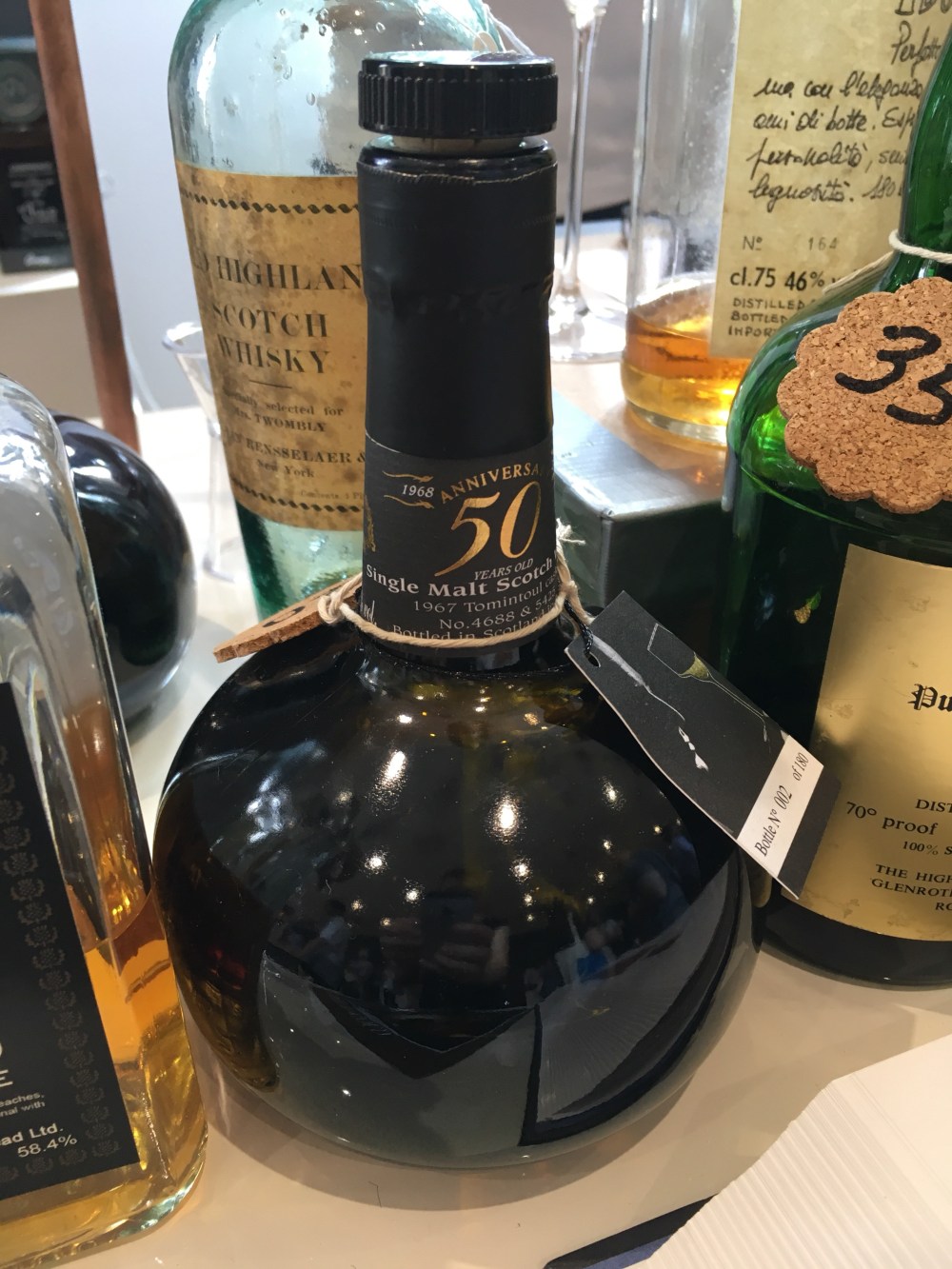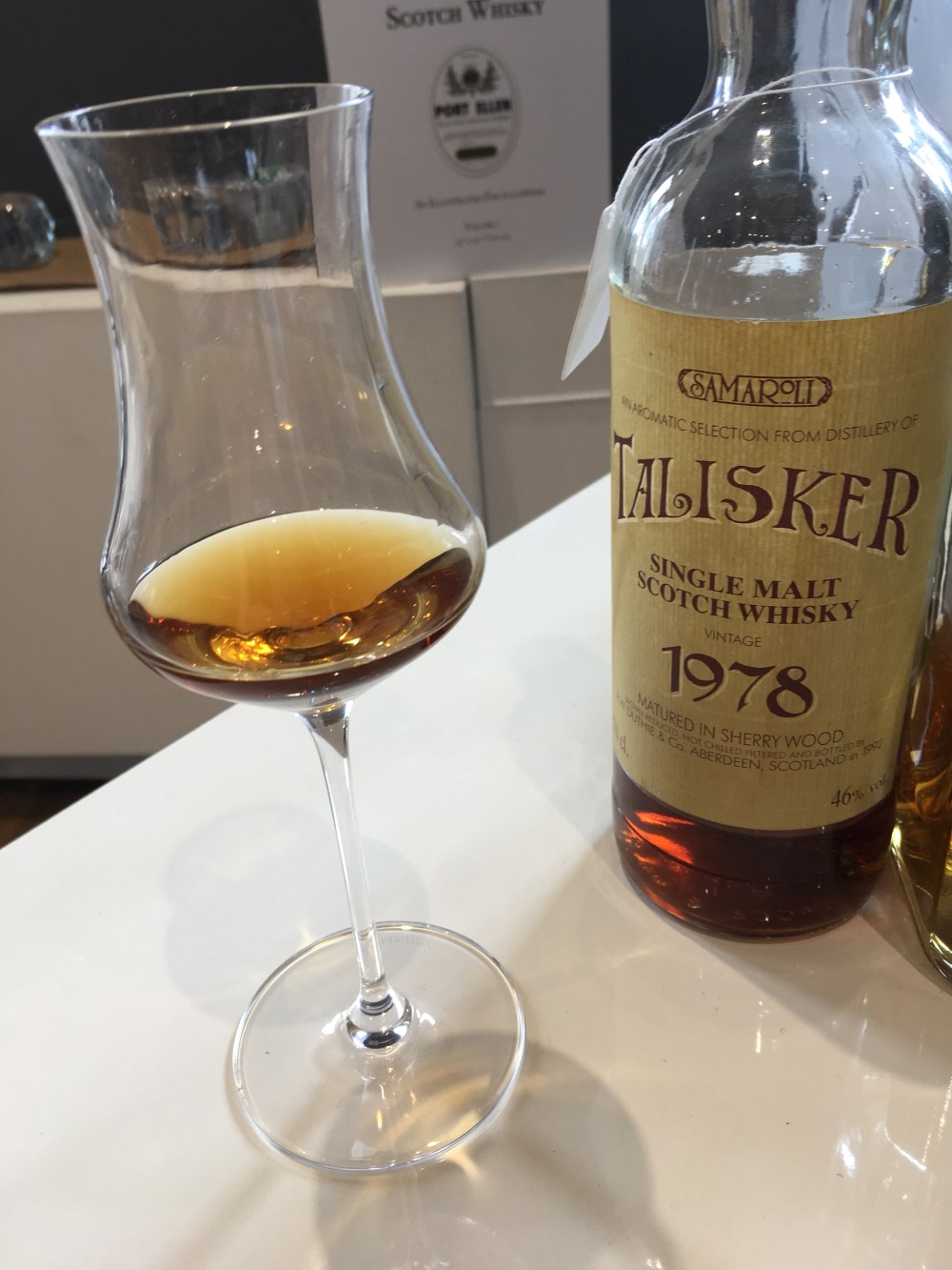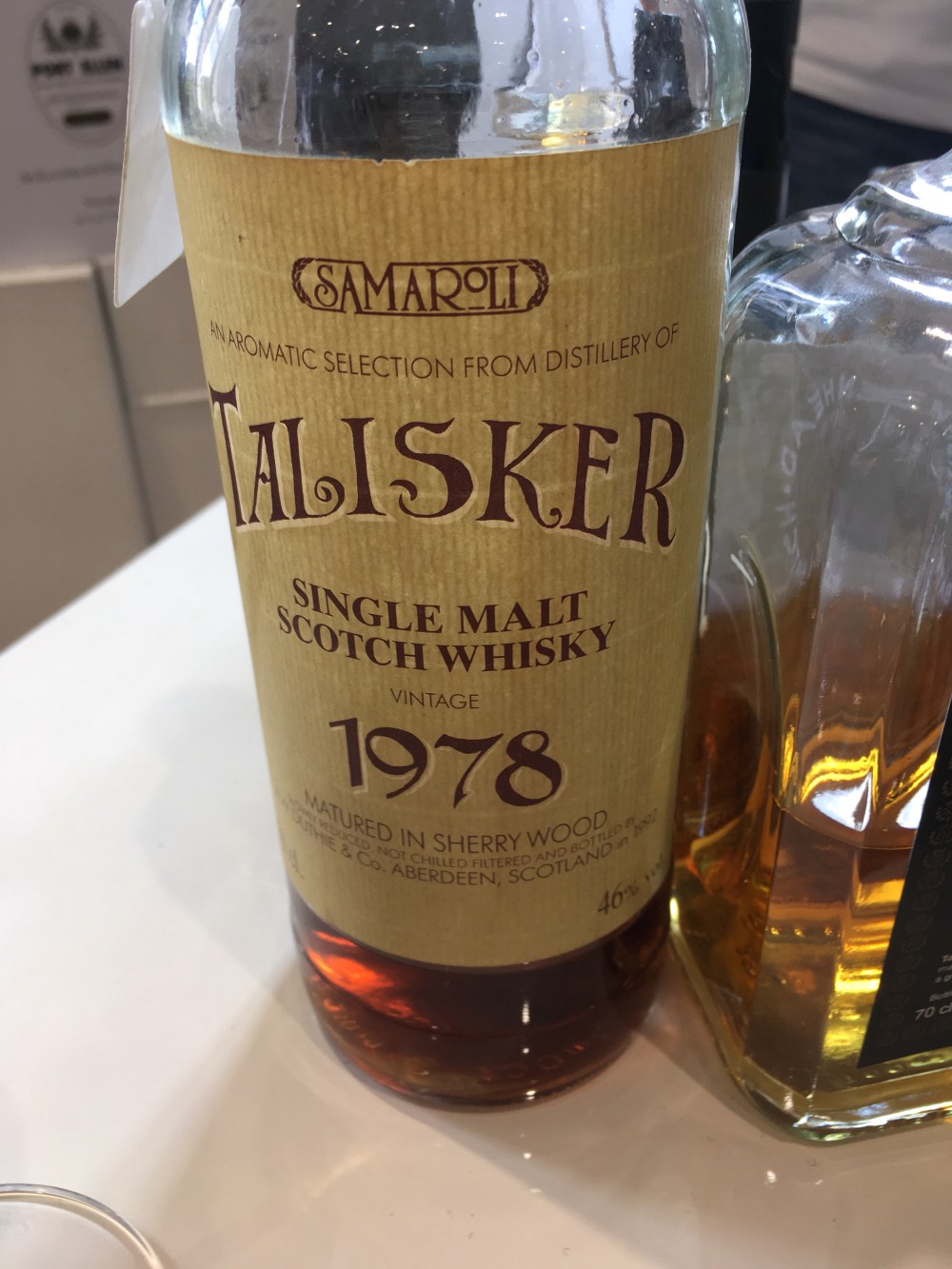 Emmanuel Dron, qui a créé l’un des plus prestigieux bars à whiskies au monde, et qui se situe à Singapour était là. Parmi ses bouteilles, j’ai eu l’honneur de déguster un Glenrothes de 42 ans d’âge titrant à 40 degrés. Ce fut un moment inoubliable. La poire était légèrement présente et le sherry affleurait, je ne pourrai l’oublier, j’ai fait un vol direct vers l’Ecosse. Puis j’ai goûté un Ardmore, distillé en 1926, de 24 ans d’âge. C’était de la crème de sherry. La bouteille a été produite en petites quantités pour des cadeaux de Noël. Enfin, j’ai beaucoup aimé un Tomintoul tout en fraîcheur, et son flacon ventru lorgnait du côté de la beauté. J’ai eu la chance aussi de goûter un Talisker vieilli en sherry casks distillé en 1978 un trente ans d’âge, un distillat qui a su conjuguer l’équilibre entre la tourbe et le sherry.