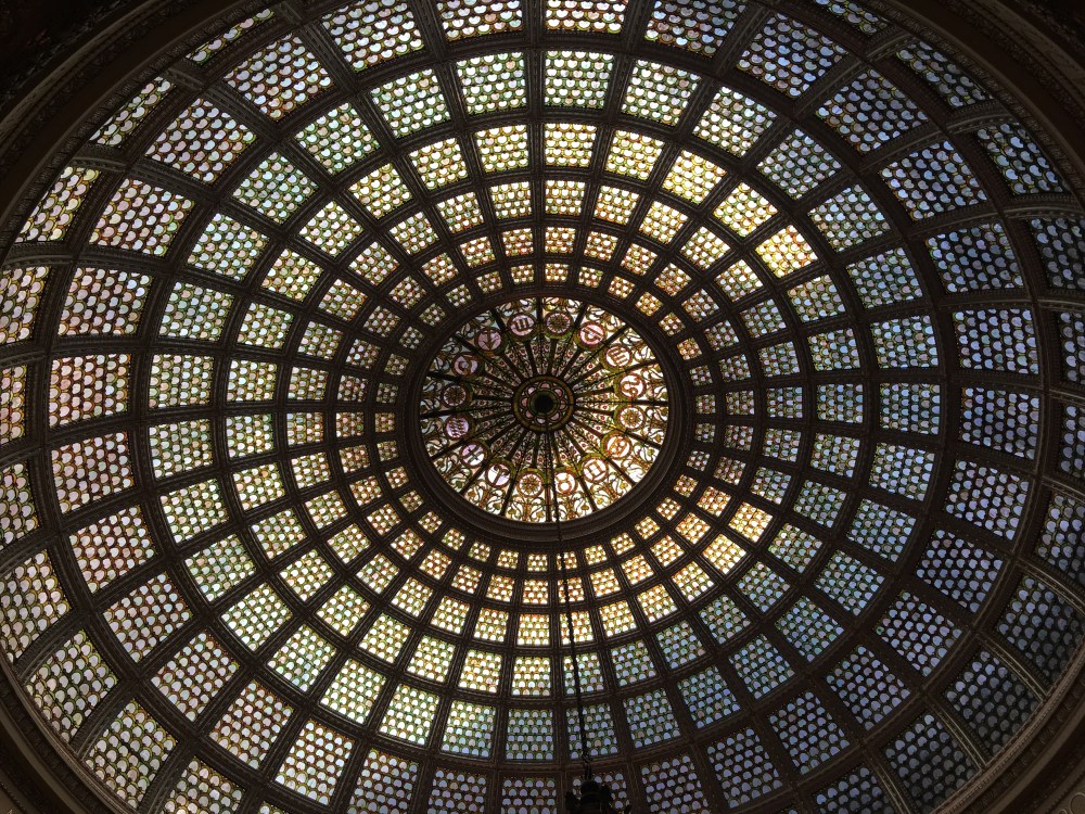 Mon premier jour à Chicago, je l’avais imaginé à pied, du côté du Loop, au cœur de la windy city. En une demie-heure, j’y suis et me retrouve devant un des célèbres et plus vieux immeubles de la ville, le Chicago Cultural Center. Comme j’avais lu que son dôme, réalisé par Tiffany’s, il y a plus d’un siècle, était un « petit bijou » incontournable, je choisis de pénétrer à l’intérieur de l’immeuble de réalisation classique, appartenant à l’école d’architecture des Beaux-arts, sachant qu’il abritait autrefois la bibliothèque publique. Je monte par les escaliers qui s’inspirent du Rialto de Venise et là, j’entends le son d’un violoncelle, puis je reconnais les suites de Bach. Il doit être 10h45. Je suis béate devant le dôme splendide et scintillant, les vieux monte-charges qui permettaient de faire suivre les livres depuis les sous sols vers la salle de lecture, et les mosaïques incrustées dans le marbre avec des références au latin, à l’hébreu, au chinois, au sanskrit et véhiculant des noms d’écrivains célèbres. Et je vois des chaises et une estrade sur laquelle sont installés un piano à queue Steinway et une femme brune, répétant, devant quelques curieux comme moi, assis ou debout, et à l’écoute. Puis, elle s’arrête. Des Américains me demandent s’ils peuvent s’installer à côté de moi et me disent qu’un concert se déroulera à 12h15, avec au programme deux sonates : la numéro 2 pour violoncelle et piano de Beethoven et un des chants de de Falla. La soliste au violoncelle s’appelle Katinka Kleijn et le pianiste Sebastian Huydts. Le concert fut merveilleux. Nous avons eu droit à un bis, une composition du pianiste. L’enregistrement doit être accessible sur la radio 98.7 wfmt. Ayant discuté pas mal avant le concert avec Donald, mon voisin, ce dernier m’a proposé de m’inviter prochainement chez lui et de me faire rencontrer son voisin, professeur de français à l’université Columbia de Chicago. Tous deux sont des professeurs retraités. En attendant, il me dit vouloir me confier à un de ses amis, également professeur retraité du collège de Chicago, diplômé de 2 Phd…, pour que ce dernier, plus disponible que lui, aujourd’hui, me conduise au Art Institute, dont ils sont tous des membres actifs. Celui-ci, prénommé Bernie, m’a organisé une visite commentée de près de 3h, nous avons fait le musée au pas de charge depuis la Renaissance jusqu’à Georgia O Keefe. C’était extraordinaire. Il connaissait tout et me faisait part d’anecdotes ou d’analyse historique ou psychologique. Je me suis dit quelle chance j’ai ! Et puis, nous avons visité des buildings dans le Loop qui ne sont pas sur les guides. Notamment, le magasin Macy’s qui dispose également d’une coupole de Tiffany’s, composée de morceaux de verres de couleurs aux motifs mauresques. Ou encore le bâtiment consacré à Marquette un évangéliste français, donnant à voir des panneaux en bronze retraçant la vie des indiens d’Amérique. Nous avons vu le Bean d’Anish Kapoor appelé également « cloud gate » qui représente le Cosmos, et sur la surface duquel tous les buildings se reflètent et se concentrent. Cette fève géante en acier brillant est fascinante. De là, nous avons dîné ensemble au Miller’s Pub, un vieil endroit, dans lequel nous avons dégusté du poisson en filet, une daurade, et de l’agneau ainsi qu’une tarte au citron et un tiramisu. Et, nous avons pris le temps d’admirer une fresque de Chagall de 1972 en pleine rue, peinte sur de petits carreaux de mosaïque. Sans parler d’autres découvertes telles que les sculptures en pleine rue de Picasso, de Calder…