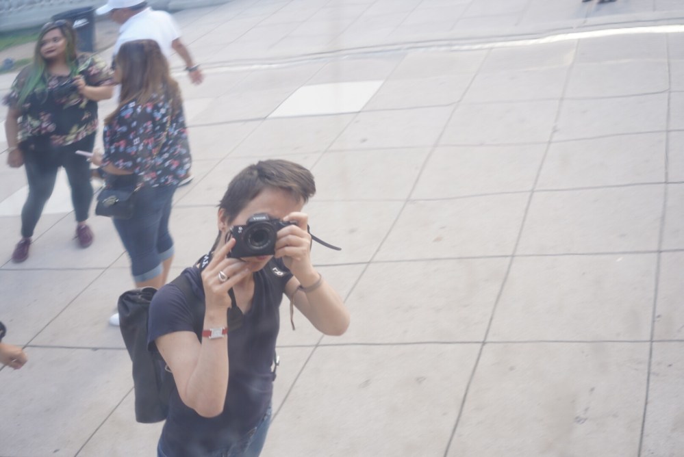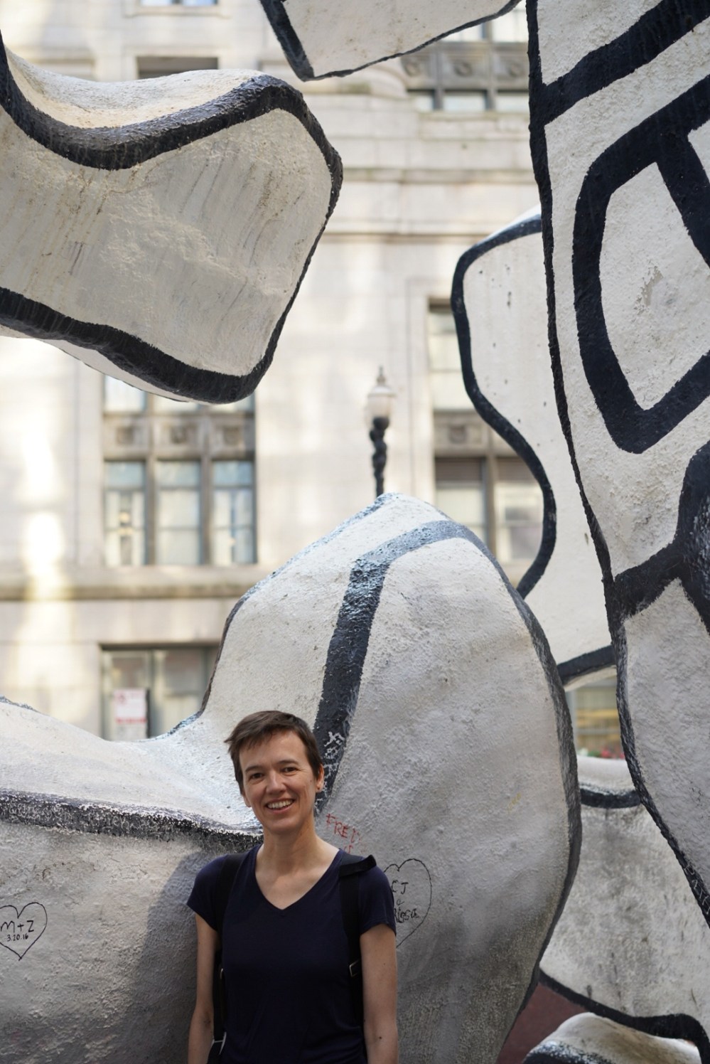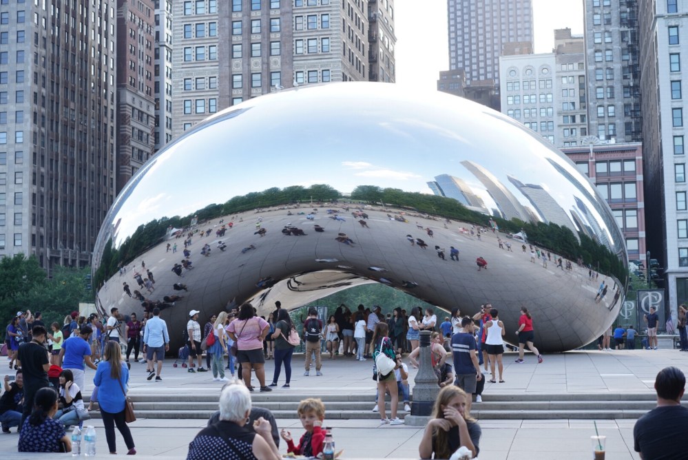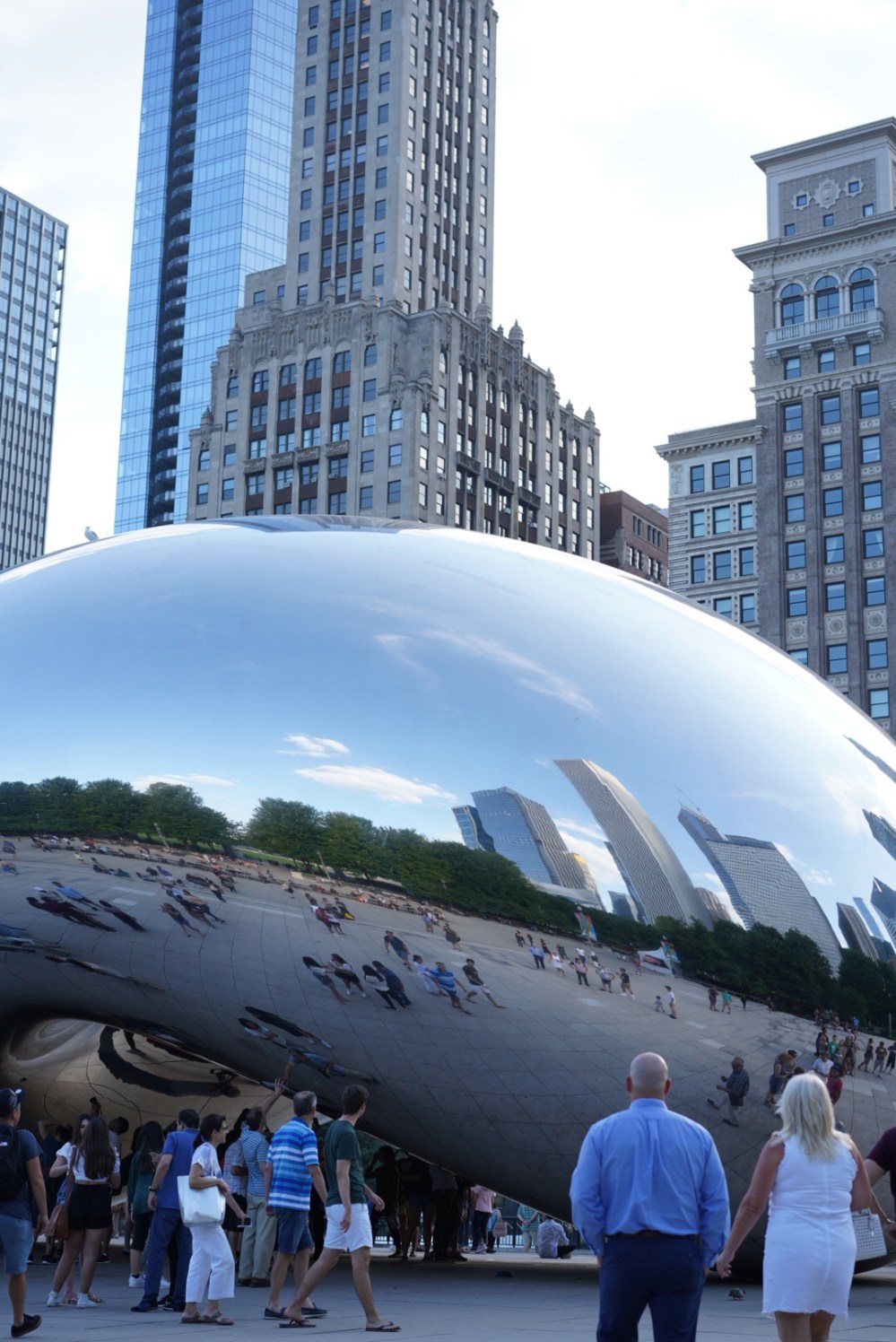 « The Cloud Gate » surnommé « the Bean » œuvre d’Anish Kapoor située dans Millenium Park, l’attraction numéro 1. On en fait le tour, et puis le spectacle est encore plus dingue dessous, car l’image est anamorphosée et diffractée à l’infini…
