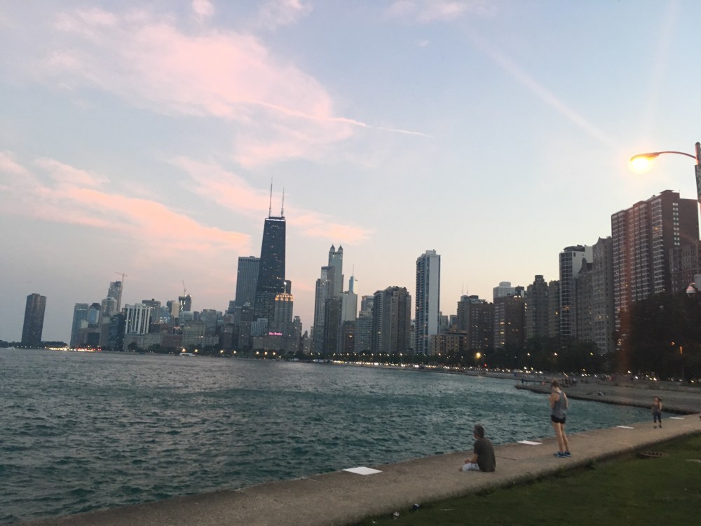 Nous avions rdv vers 11:45 AM au Chicago Cultural Center pour écouter une soprano, Jacqueline Piccolino et une pianiste, Teresa Tang, interpréter les 3 sonnets de Pétrarque de Liszt et les 4 chansons de Reynaldo Hahn ainsi qu’un air de Thaïs de Massenet. C’était divin sous la coupole de Tiffany’s. Puis nous avons parlé avec les interprètes. Nous n’avions rien planifié de plus. Alors, en bonne touriste, j’ai demandé à goûter un hot dog local, le meilleur du coin. La saucisse était grillée et c’était simplement bon. Puis, nous avons pris le « EL » et la brown line pour pouvoir prendre des photos de la Skyline vue du métro aérien. De là, nous sommes allés dans le nord du côté du Lincoln Park qui fait 500 ha de mémoire. Nous y avons visité une serre de fleurs exotiques puis le zoo. Ensuite, nous avons dîné des empanadas délicieuses, une au bœuf bien relevée et l’autre aux épinards mozzarella. Et un peu plus loin, nous avons dégusté des glaces de dingue, une au thé vert et l’autre à l’avocat. De là, nous avons marché sur la 18 miles trail qui longe le lac et qui rejoint le Downtown district. La plage les bikers les joggers le volleyball c’était top cool. Nous sommes arrivés sur Michigan Avenue qui se transforme en Magnificient Mile et j’ai retrouvé mon hôtel.