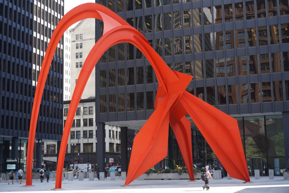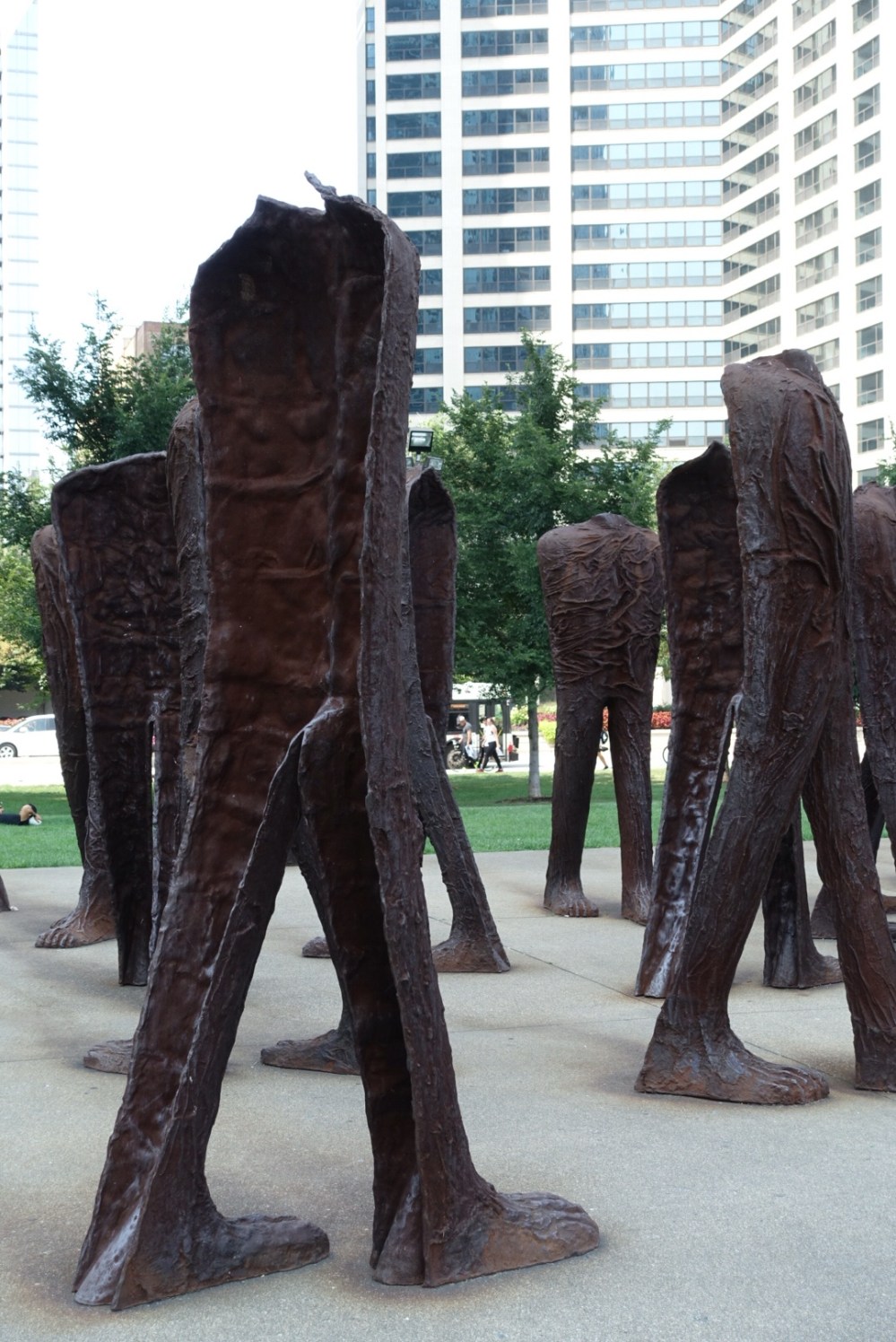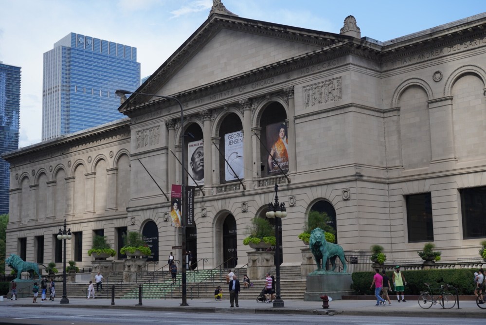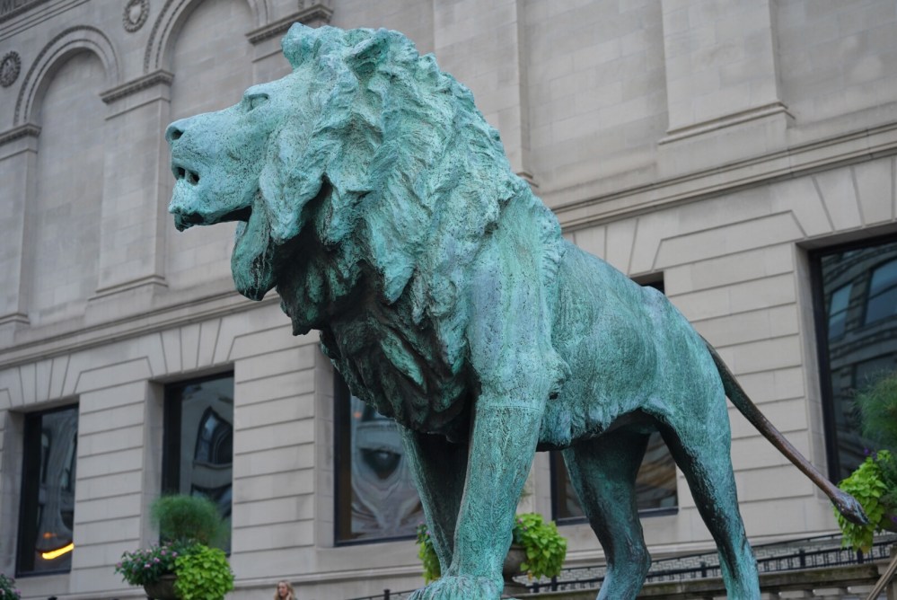 Et que dire de la culture, simplement en regardant d’autres photos…La façade du Art Institute et un de ses lions en bronze, les miniatures de Mme Thorne, le Flamingo de Calder, une statuette de la civilisation romaine du Fayoum exposée au musée oriental de l’Université de Chicago et des statues en plein air sans tête dans le Lincoln Park, une toile composée par des jeunes au Chicago Cultural Center.