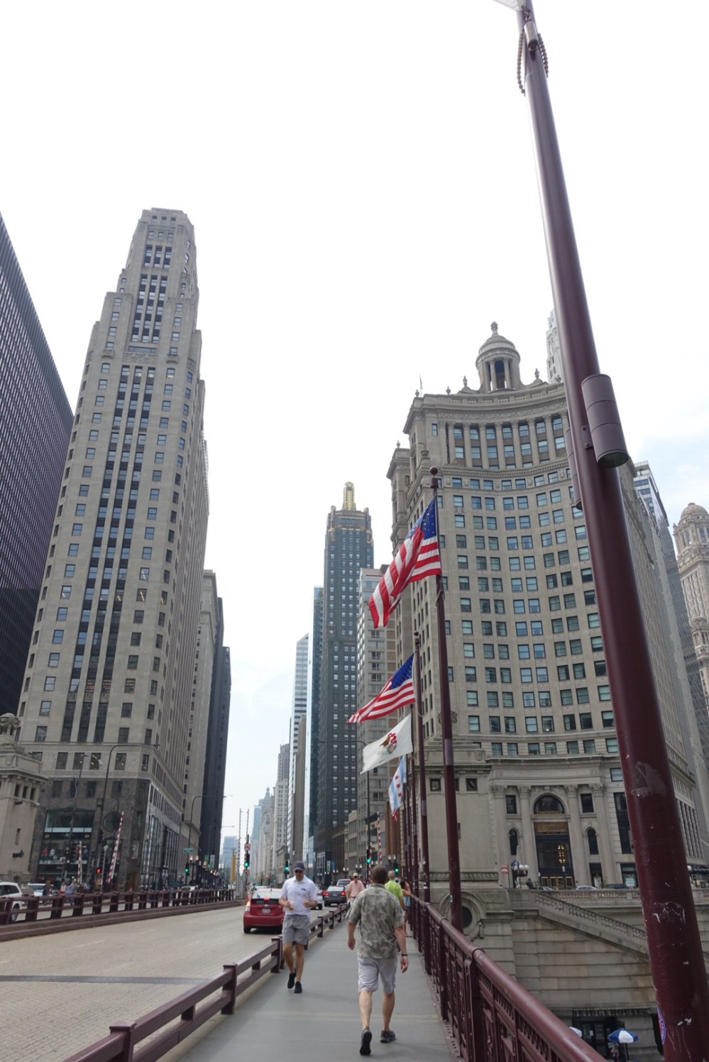 La ville où l’on marche et où le building est roi. Aucun sentiment d’oppression seulement l’air du lac qui nous rafraîchit et nous rend léger. Quant au flag de l’oncle Sam, il est partout ! La fierté est un mode commun ici, notre anti-thèse…