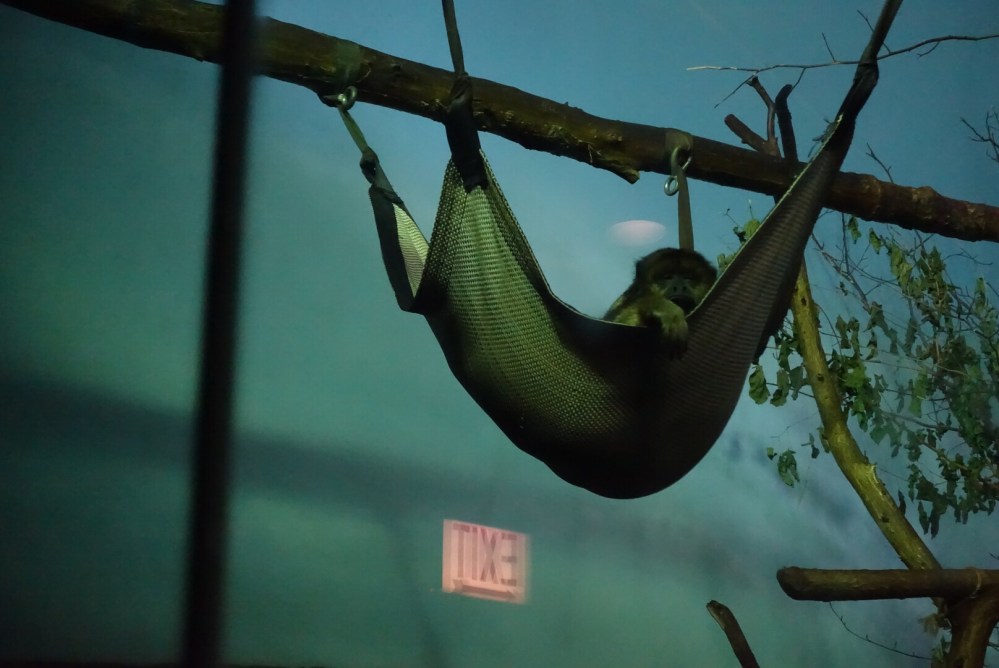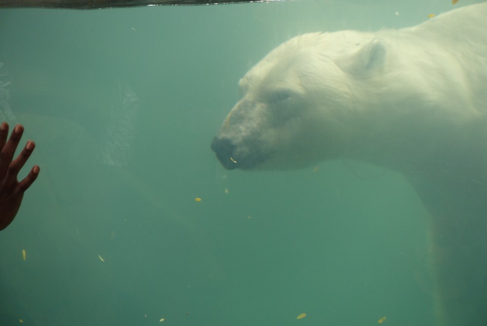 Le zoo situé dans Lincoln Park, au nord, à une vingtaine de blocs du centre ville, toujours dans la ville de Chicago, est gratuit et, franchement, c’est un enchantement. J’adore ce singe dans son hamac, j’y serais bien allée avec lui. Quant à l’échassier, j’ai au moins 8 photos de lui, il change de patte, il fait le beau, il danse et toujours, il reste sur sa branche. Il nous a fait un numéro de funambule hors du commun. Enfin, l’ours polaire a d’abord nagé sous l’eau puis à moitié la tête à l’air et le corps en flottaison. C’était magique. Avec Bernie, nous étions comme des enfants. Il a matraqué de manière frénétique.