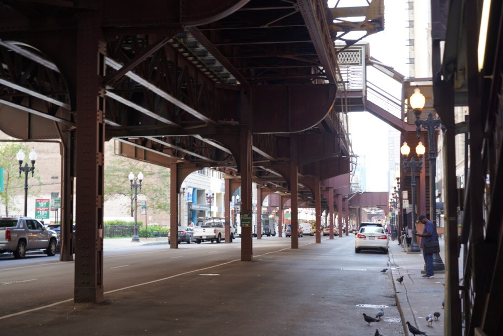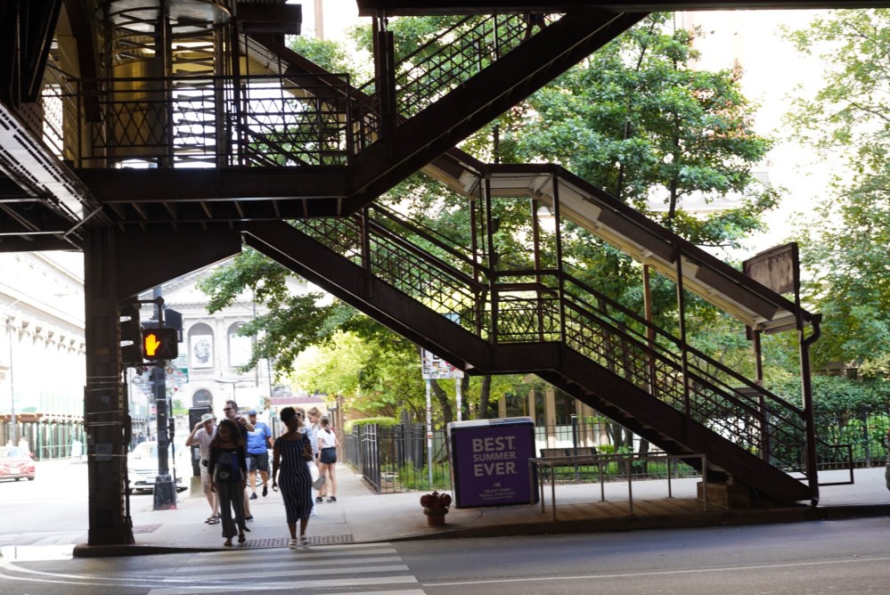 Ci-dessous : le « EL » et ses passagers, ses rails, ses courbes et ce qu’il permet de voir, …