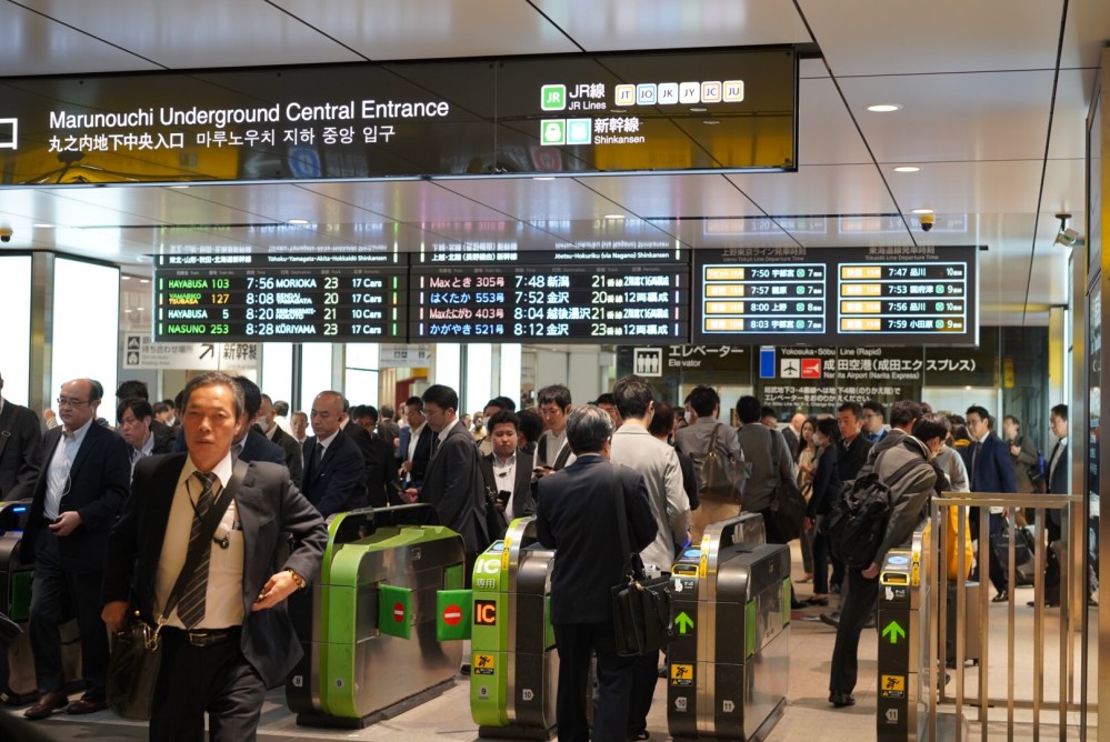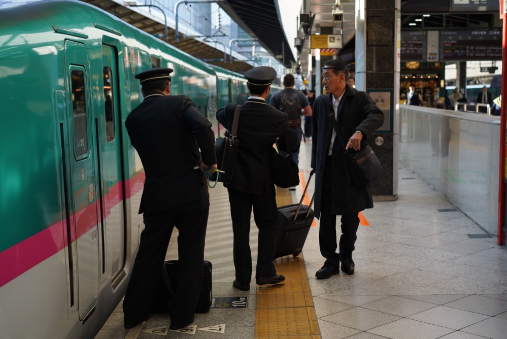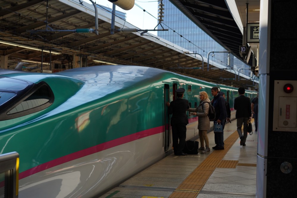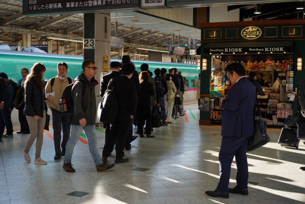Ensuite, après cinq stations je descends à la gare de Tokyo direction la plateforme des shinkansen et rejoins les quais qui desservent les Alpes Japonaises et la mer du Japon. À nouveau la discipline est au rdv, on fait la queue devant les escalators bourrés à craquer.