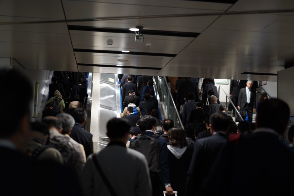 Ce matin, lever tôt, 10 min de marche jusqu’au métro d’Akasaka, plus chargée qu’à l’arrivée… Du monde, beaucoup de monde dans les couloirs et dans le métro, mais jamais une bousculade, les mouvements sont orchestrés comme dans un ballet qui convierait de multiples troupes sûres de leur trajectoire et sachant pratiquer l’art de l’évitement.