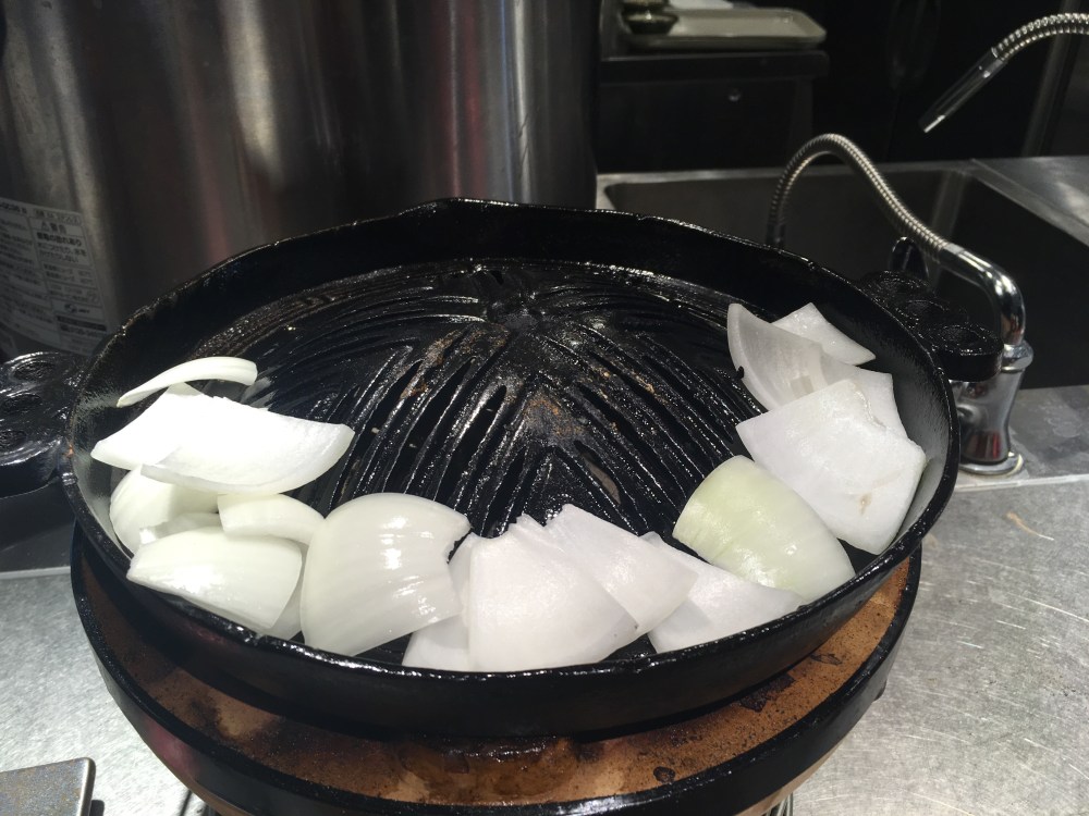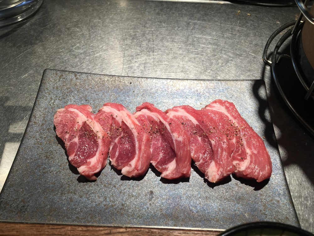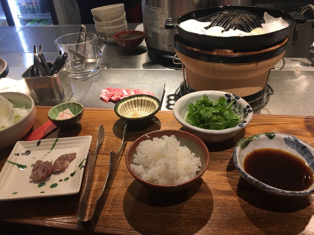 Ce fut épique de trouver l’hôtel à Shinjuku. Pour commencer, arriver à l’heure d’affluence, un vendredi soir, à la gare de Tokyo, en shinkansen, c’est inconscient surtout avec deux sacs à dos et une valise. Ensuite, bille en tête, je prends le métro après avoir pratiqué le slalom géant dans la gare et les couloirs du métro en direction de Shibuya persuadée que mon hôtel de ce soir se trouvait là-bas. Pour atteindre mon lieu de destination, j’ai changé de direction une fois. Et enfin, j’ai mis les pieds dans la plus grosse gare du monde 3 millions de passagers par jour et bien sûr je me frotte à nouveau à une discipline de slalom géant. Et depuis, le départ de Kanazawa je n’avais quasiment plus de batterie ni sur mon iPhone ni sur mon pocket wifi, donc je les éteins et les ouvre que pour le gps sans vérifier l’adresse de l’hôtel dans mon application Booking.com. Sauf qu’arrivée à l’hôtel, ils me disent que c’est la bonne chaîne mais que je dois aller à l’autre, à Shinjuku et pas à Shibuya. J’aurais pu prendre un taxi mais bon. Je préfère en baver jusqu’au bout et tirer la valise et prendre les couloirs du métro plus ou moins avec escalators et souvent avec des marches. Je trouve la bonne ligne de métro qui est directe Shibuya – Higashi Shinjuku sauf que j’attends le métro un quart d’heure qui finalement n’est pas omnibus et ne s’arrête pas où je veux ! En gros j’ai perdu 1h30 et je suis un peu énervée … J’y arrive quand même à cet hôtel, je me déclare à la réception, je paie et je laisse toutes mes affaires dans la chambre. Sans wifi, je dégote par chance un restaurant de grillades spécialisé dans l’agneau, l’épaule et c’est divin …Chacun grille ses petites tranches et j’en ai repris deux fois et j’ai demandé en plus de la langue.
