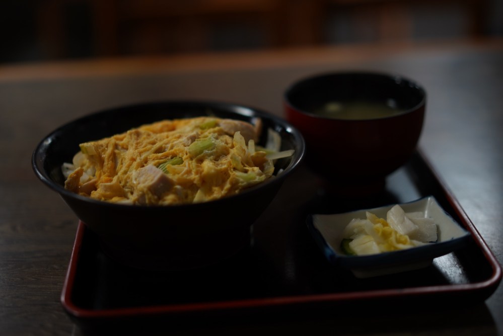 J’ai commandé un Oyako-don. Un don c’est un grand bol de riz et dessus le cuisto a rajouté de l’omelette, des filets de poulet non grillés et des oignons frais al dente. C’est super bon. En plus, pour compléter le plateau, ils ont déposé un petit bol de soupe miso et des pickles rafraîchissants.