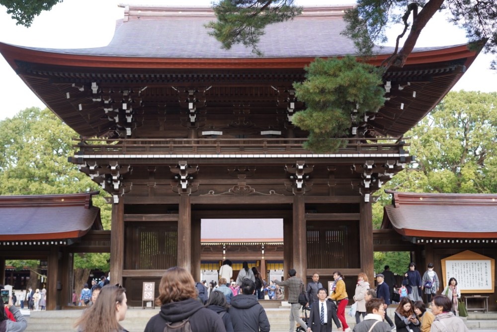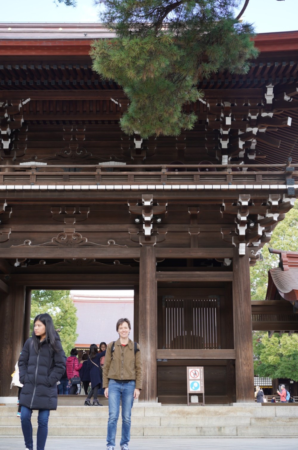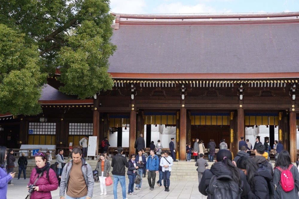 Les 1/2/3 janvier de chaque année 3 millions de Japonais adeptes du Shintoïsme (plus de 60% de la population) affluent pour faire une offrande et un vœu, ce matin, j’ai suivi les rites. La purification des mains, droite puis gauche, ensuite la bouche, on crache. De là nous avons marché jusqu’au temple, et devant la barrière en bois, car peu de personnes ont accès à l’intérieur, nous avons effectué les gestes associés, se courber deux fois, taper des mains deux fois (on les rapproche pendant un deuil sans les frapper), faire une offrande (lancer de pièces) et un vœu puis se recourber une fois.