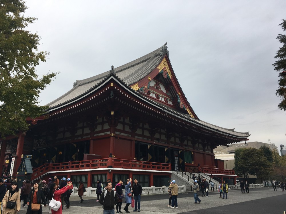 J’ai vu l’immeuble de Starck conçu pour le siège d’Asahi Beer, une myriade de fenêtres dorées telle une concentration de bière dans un parallélépipède qui se reflèterait sur la Sumida gawa. Ensuite, j’ai été à la rencontre du très beau temple Senso-ji et du petit sanctuaire Asakusa Jinja. Et en suivant le flot j’ai traversé la rue des échoppes qui proposent de l’artisanat plus ou moins typique.