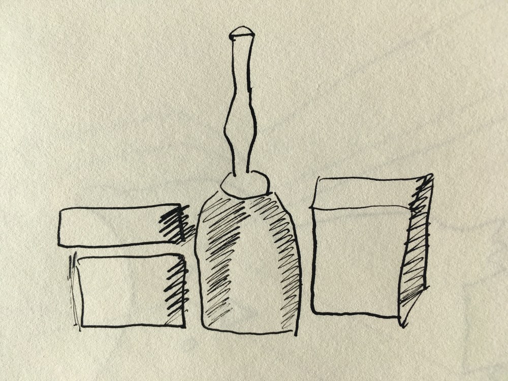 Dans mon nid, j’ai réservé un petit endroit pour dessiner, sortir ma plume ou mes pastels de leurs boîtes. La table est ronde comme la planète, un plateau en verre qui tourne sur lui-même, aussi fragile que notre terre. Les trois pieds en acier galvanisé la stabilise. Un fauteuil à bascule, modèle rase motte me rapproche du sol et de mes sensations élémentaires. Tout près, un tapis baleine me rappelle que je suis dans un univers un peu barré. Et lorsque je reprends ma respiration entre deux coups de crayon, je vois des nuages grimper à tous les étages. Aux aguets ma truffe se saisit de l’instant puis repart sur le motif.