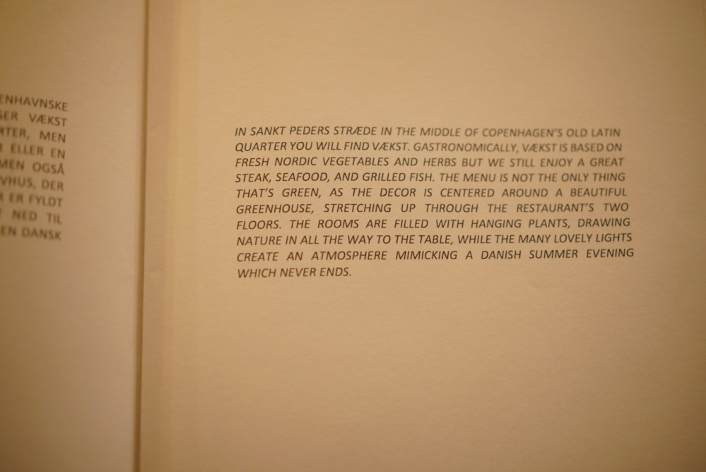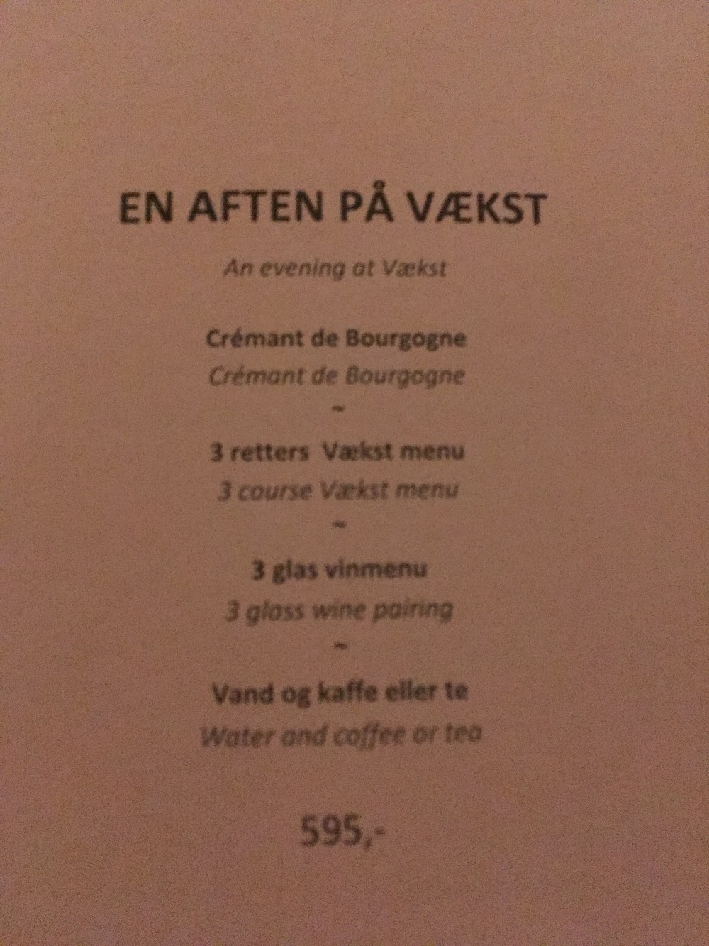 petit détour chez « Vaekst » (qui veut dire « croissance ») hier soir à côté de l’hôtel, dans le quartier latin de Copenhague.
