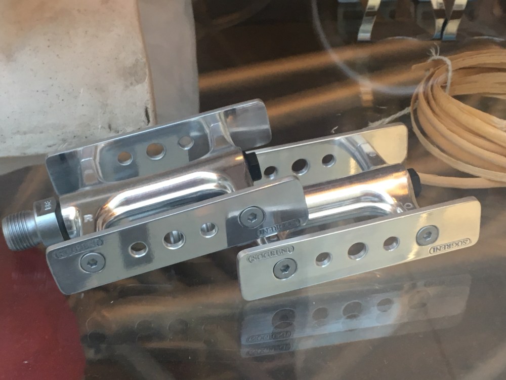Dans la rue de mon hôtel, la maison Sogreni, ouverte 3 jours par semaine, propose à la vente des vélos, et des accessoires, de la sonnette aux pédales en passant par des selles Brooks. des lampes à Led et des chaînes…Leurs sonnettes sont étonnantes, se composant d’un disque en acier, cuivre, zinc ou aluminium et d’un ressort qui lorsqu’on le tire puis le lâche émet par vibration une note, un son qui dépend du matériau.