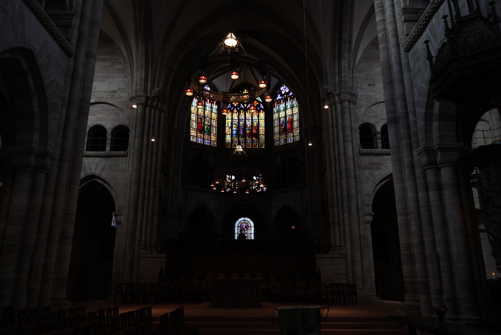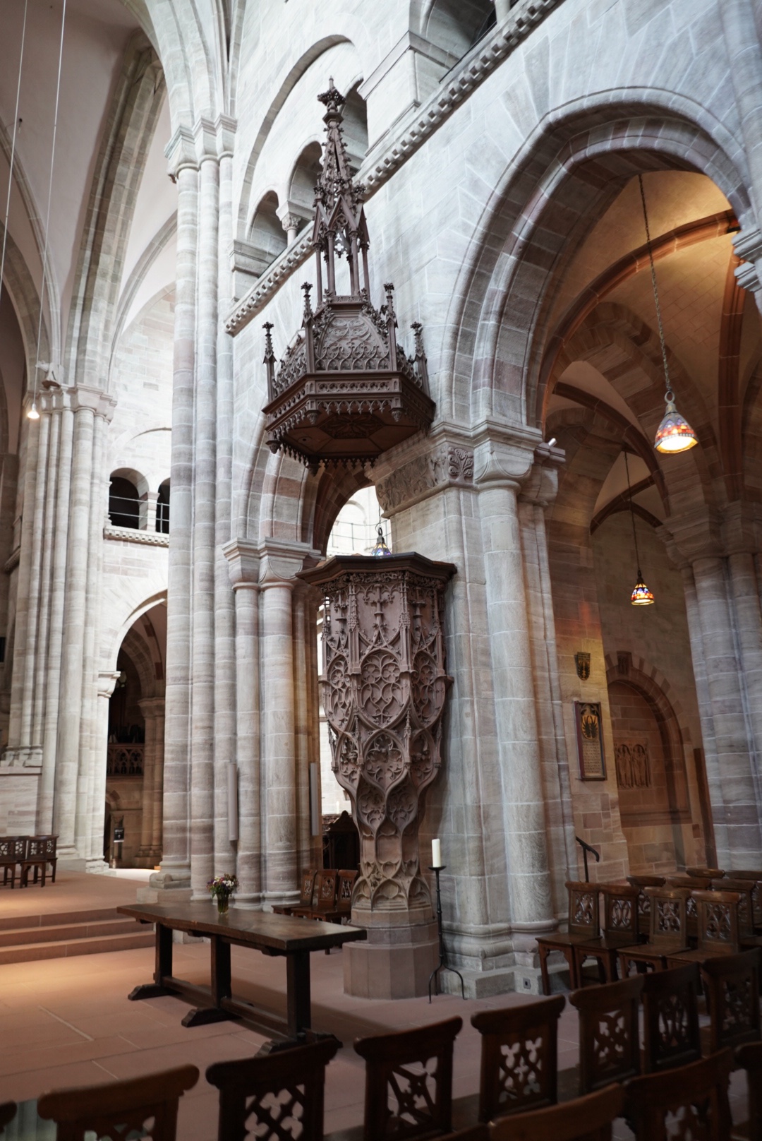 C’est dans la crypte que j’ai réalisé que la Cathédrale de Bâle a été construite à quatre périodes de l’histoire : Carolingienne au 9eme siècle puis Romane au 10 et au 12eme siècle et enfin Gothique l’actuelle qui date du 15eme. Sur la façade St Georges et le dragon et à l’intérieur des orgues magnifiques. Concert en prévision…