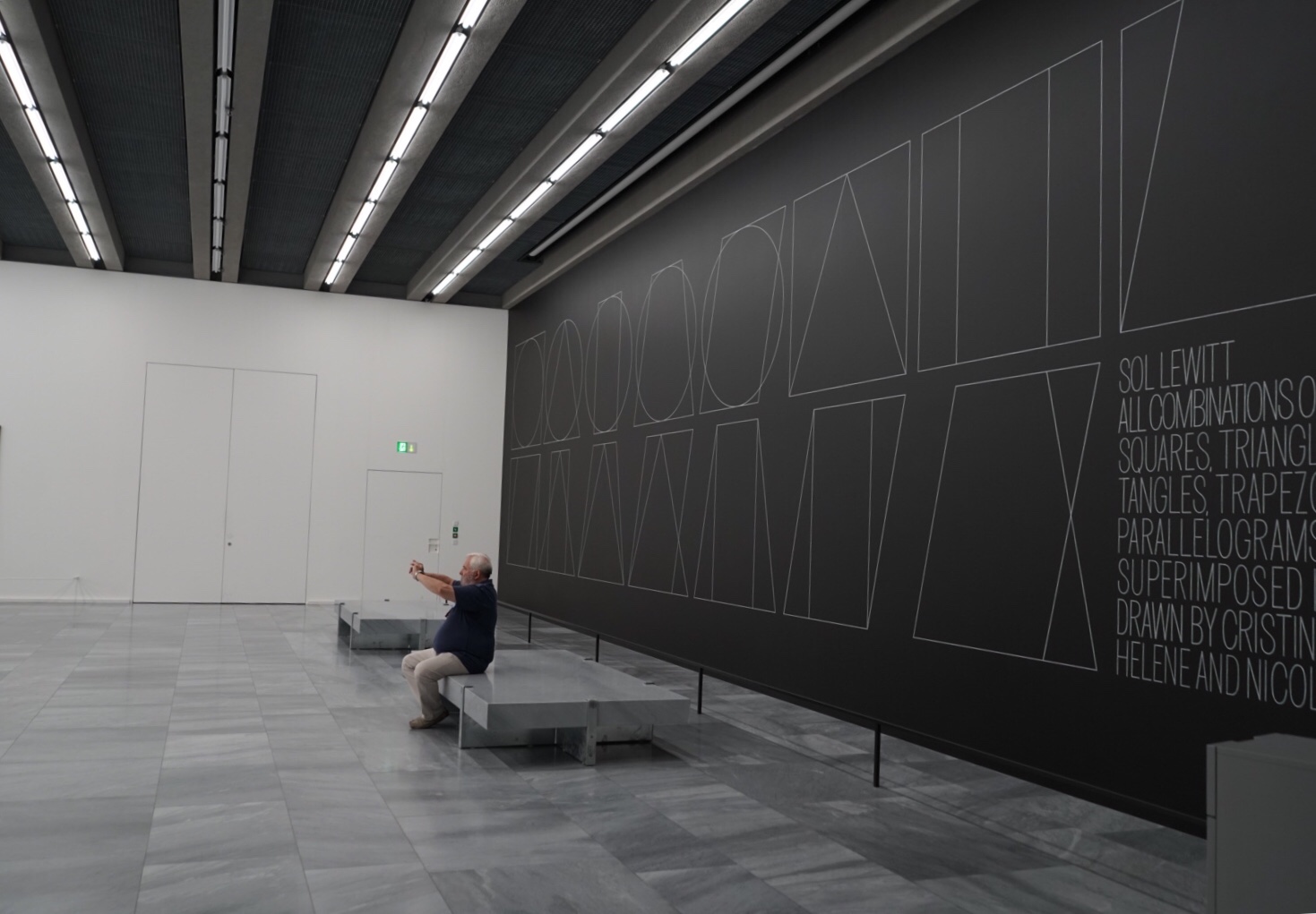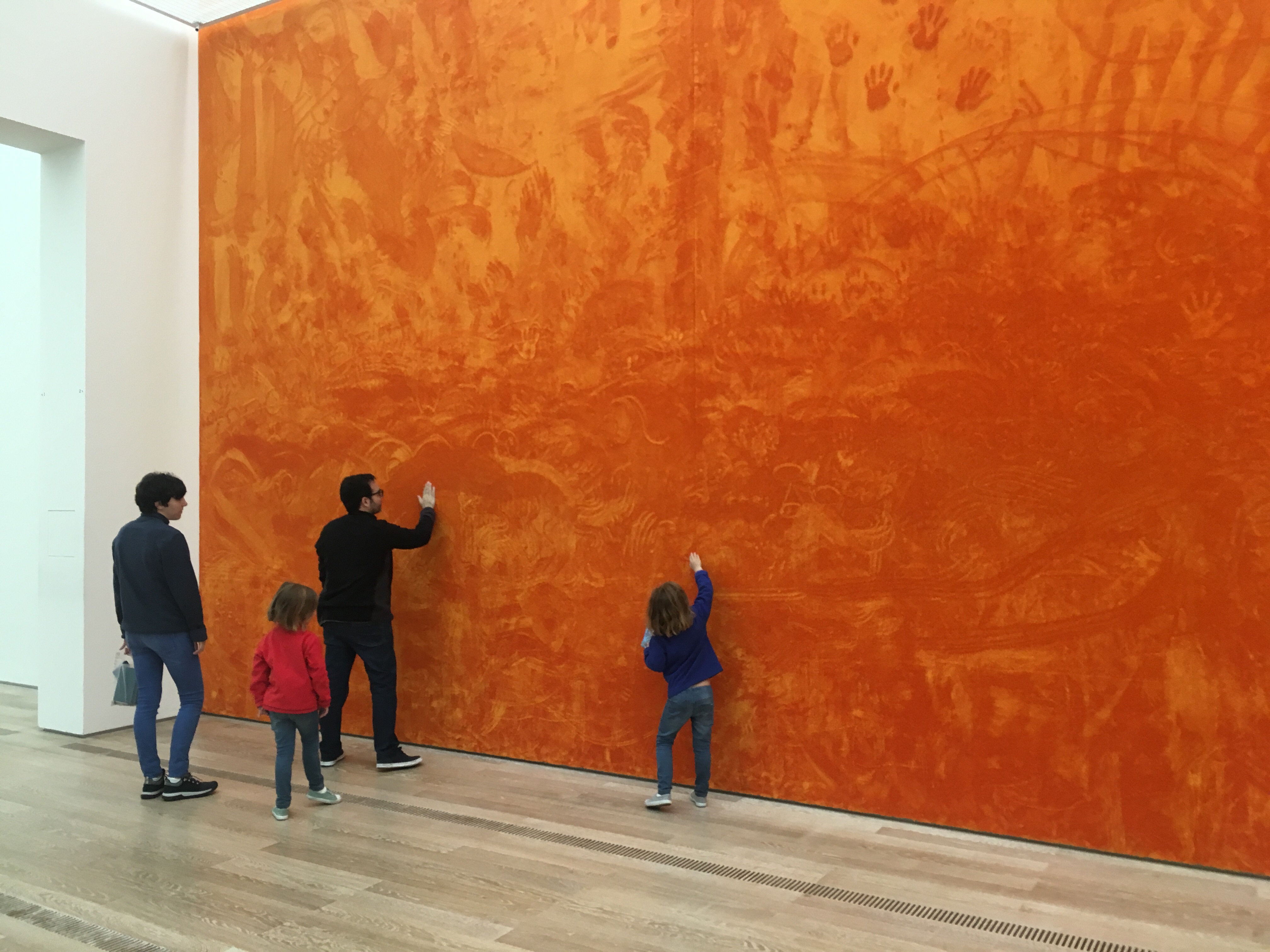 Calder et son flamengo noir, le rouge est à Chicago devant l’hôtel de villePresbytie et photographie ou l’art de conjuguer et d’accommoder l’œil au sujet Le clown blanc d’Henri Laurenstrop chouette la Fondation Rudolf Stingel, de l’orange au mur et l’occasion de déposer son empreinte sur la moquette