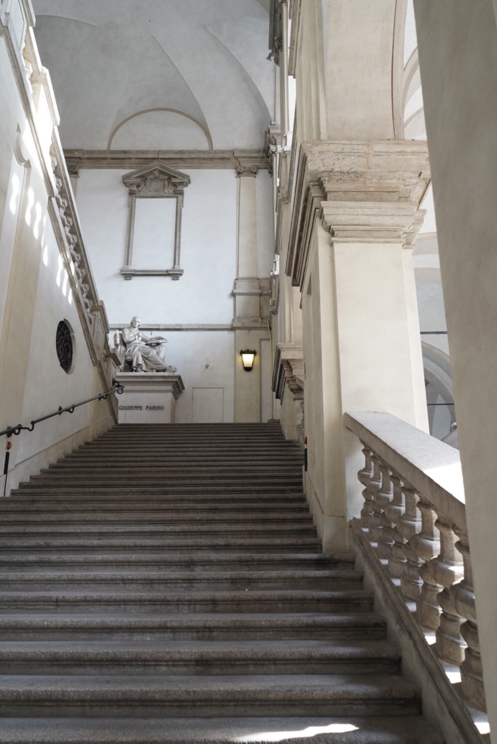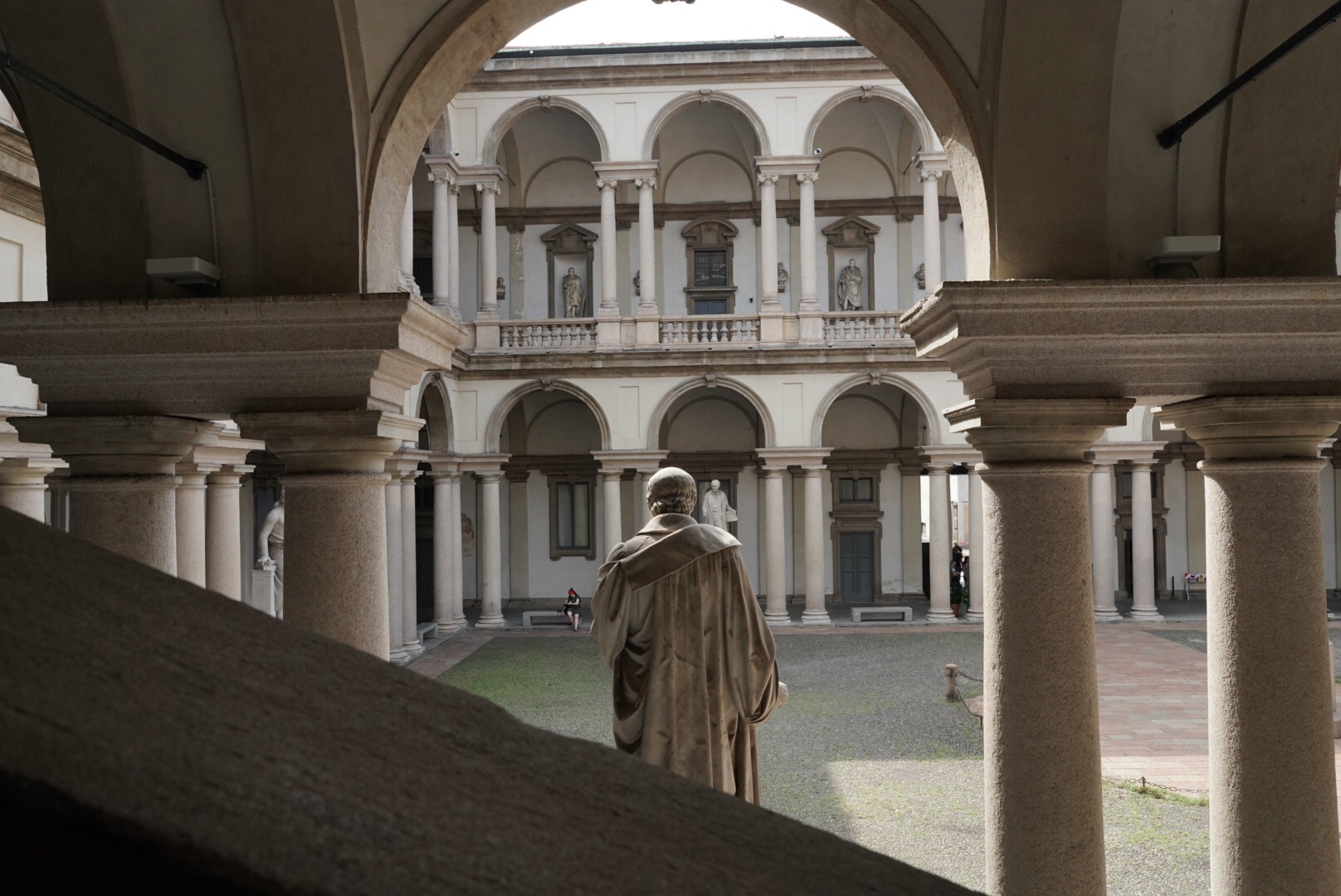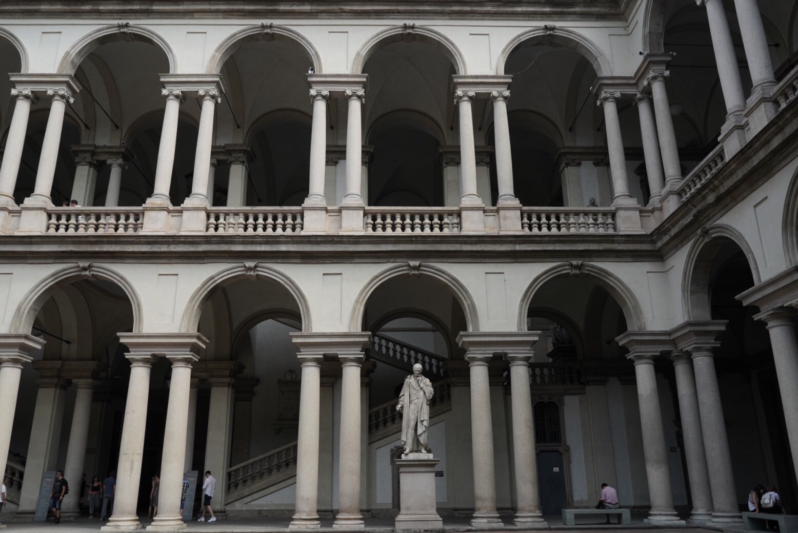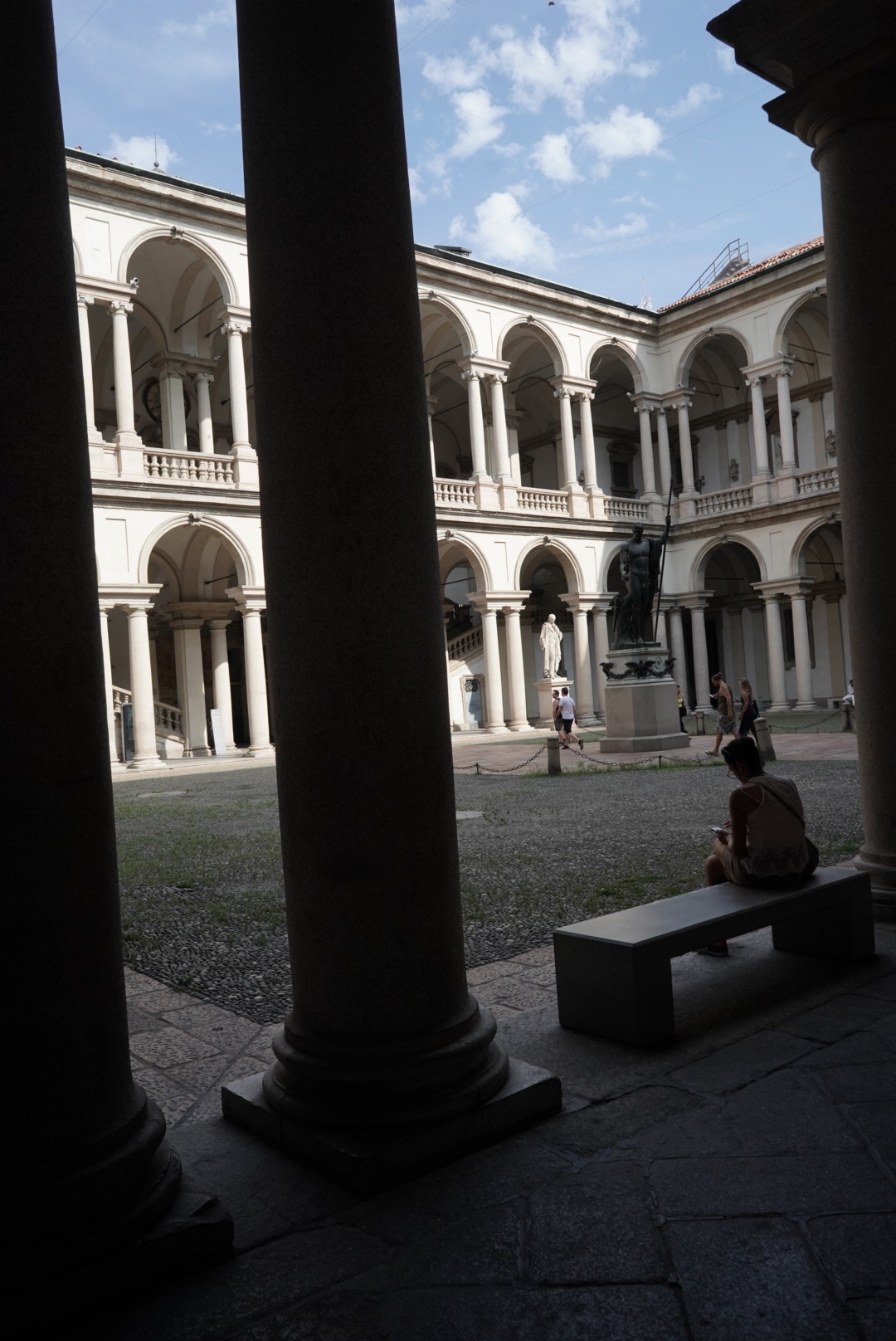 Pour être saisie par un peu de fraîcheur, je me suis assise dans la cour de la Pinacothèque de Bréra, reconstruite à l’identique après la 2ème guerre mondiale. C’est un concentré de joyaux de la Renaissance Italienne émaillé de Rubens, Rembrandt et autres Poliakoff…