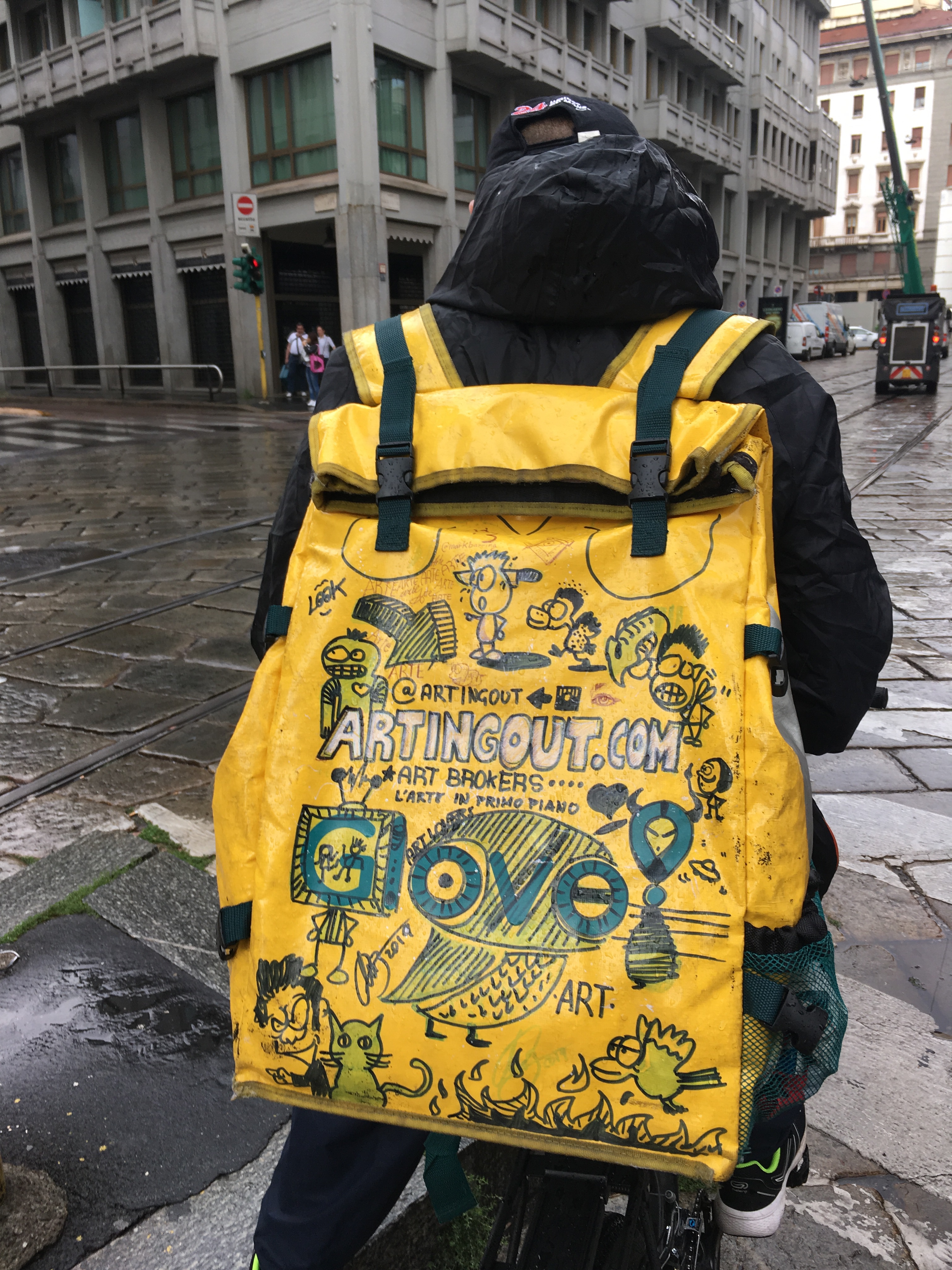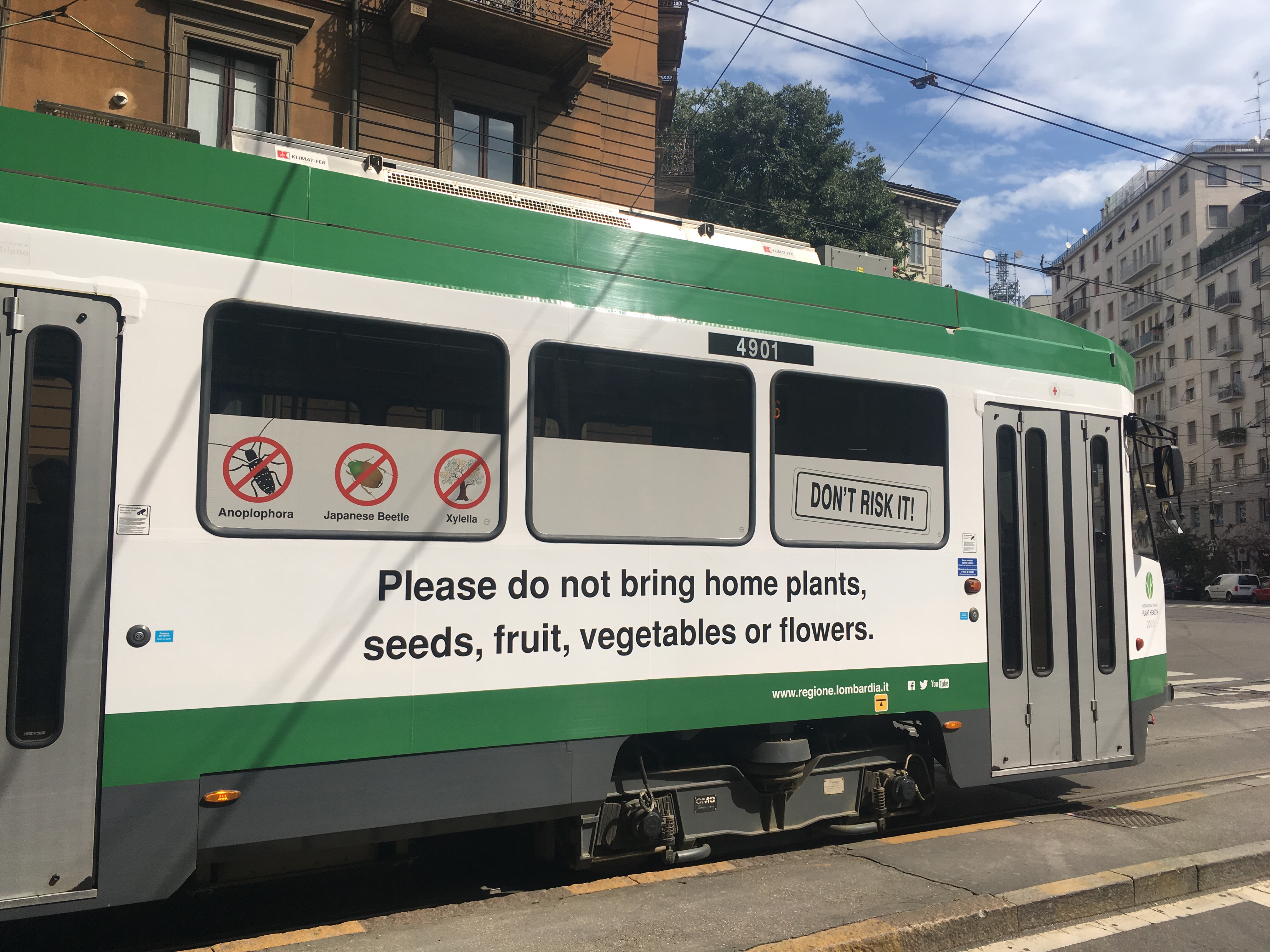 Au Babila HostelMatinée pluvieuse Fleurs urbainesL’Eglise San Bernardino à un quart d’heure de l’auberge de jeunesse Sur le mur de l’église Hier au hasard de mes pérégrinations La Porte d’un ancien hôpital Toujours l’ancien hôpital La façade dudit hôpital Je marche et regarde les tramways avec un peu de lecture à la clé !Vivement le ciel bleu !