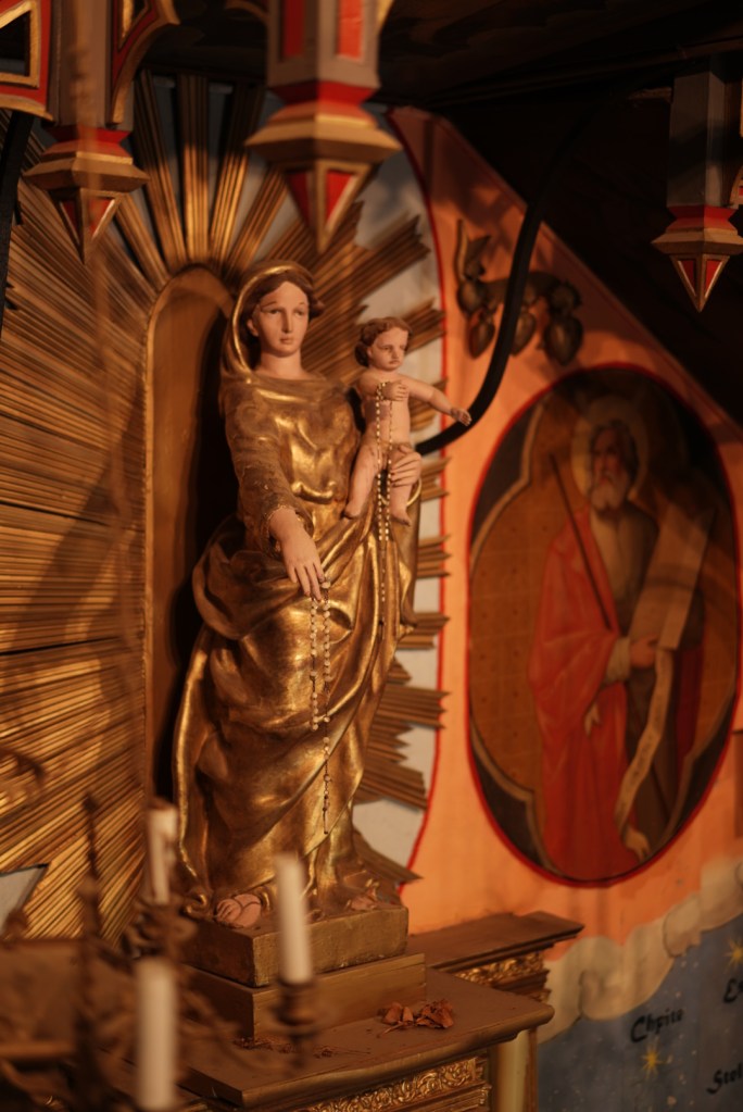 Nyons vaut le coup d’œil. Il suffit d’enjamber l’Eygues et un pont roman et non romain, à une vingtaine de kilomètres de la maison, pour le découvrir. En dehors de ses olives qui ont forgé sa renommée, la ville regorge de petits chemins le long de la rivière et de ruelles qui vous conduisent dans ses hauteurs jusqu’à une tour datant du 13ème siècle et un sanctuaire. La tour nommée Randonne a été édifiée par Madame de Montauban pour protéger la baronnie contre les assaillants puis au 19ème siècle elle a été convertie en chapelle, la chapelle de Bon Secours. En principe, elle ne se visite pas sauf une fois par semaine, en sollicitant un guide, en format groupe. Coup de peau, nous sommes arrivées à ce moment-là et c’était merveilleux de pouvoir découvrir la vierge, les fresques, en fin d’après-midi.