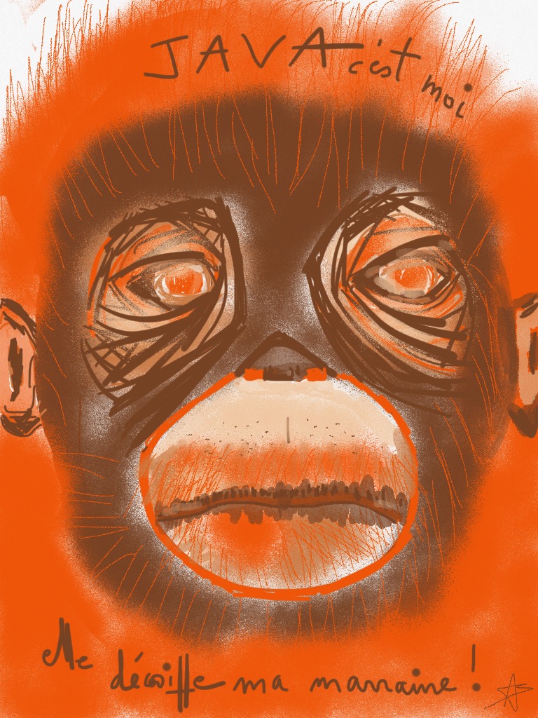 Bonjour Anne, Je ne pense pas que Java te ressemble, par contre elle est très bien dessinée, bon week-end à vous trois.J’ai trouvé un restaurateur pour nous préparer des plats :apéritif et viande, un pâtissier de la place St Martin pour le gâteau. Gros bisous