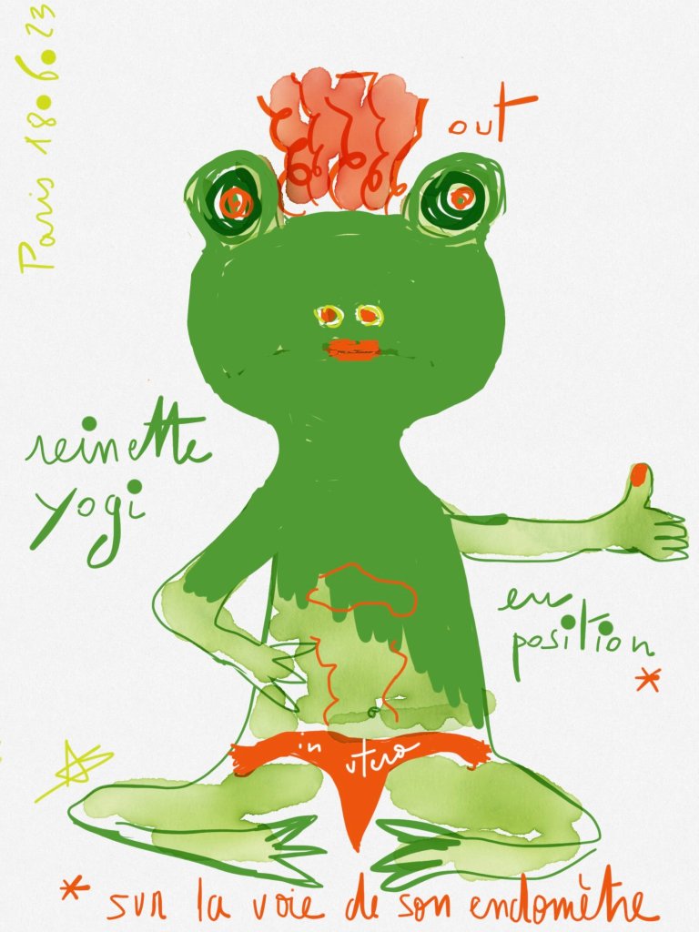 1 femme sur 10 est atteinte d’endométriose et déguste lors de ses menstruations voire peut souffrir d’autres effets secondaires plus graves. Mon petit dessin teinté d’humour me semblait un bon moyen de le rappeler avec une dose de fantaisie. Si, aujourd’hui elles ne débarquent plus… je suis solidaire pour l’avoir vécu. Yogi, je suis 😉