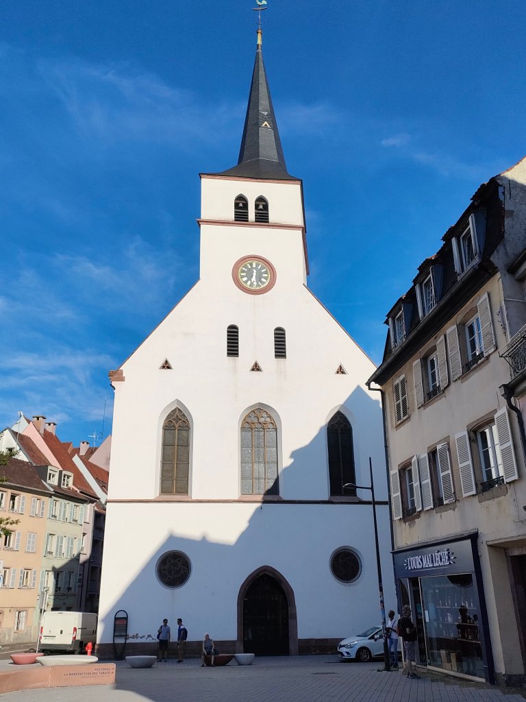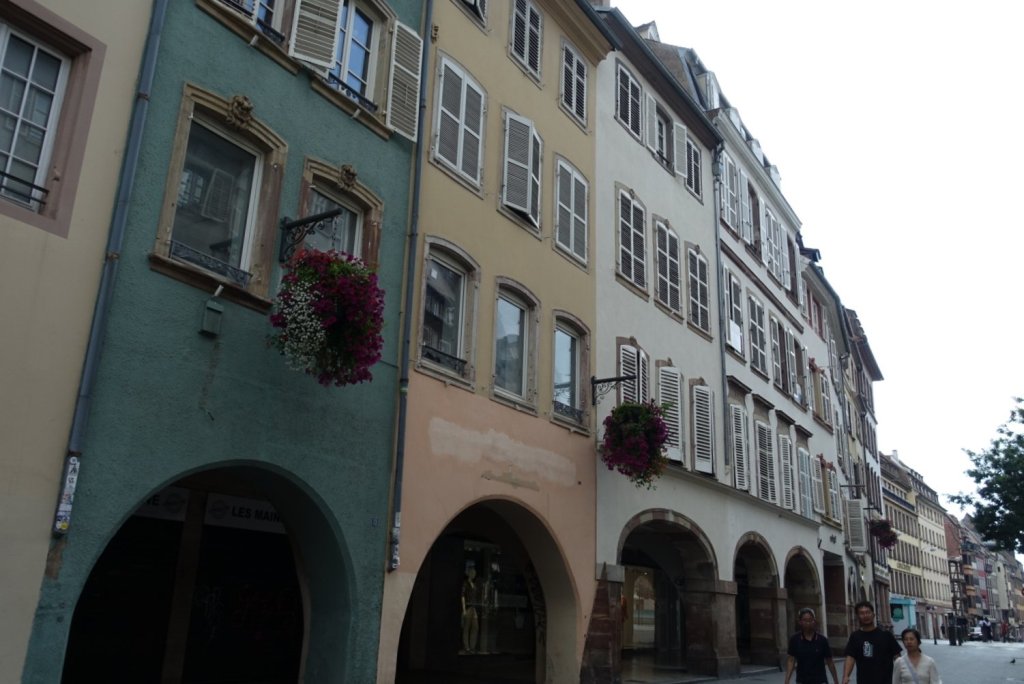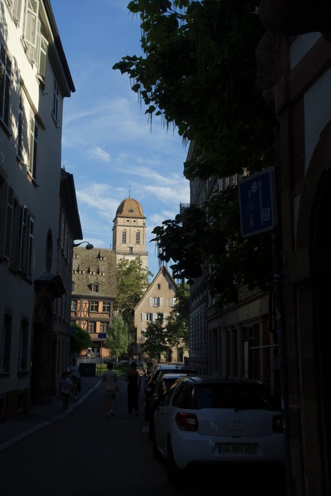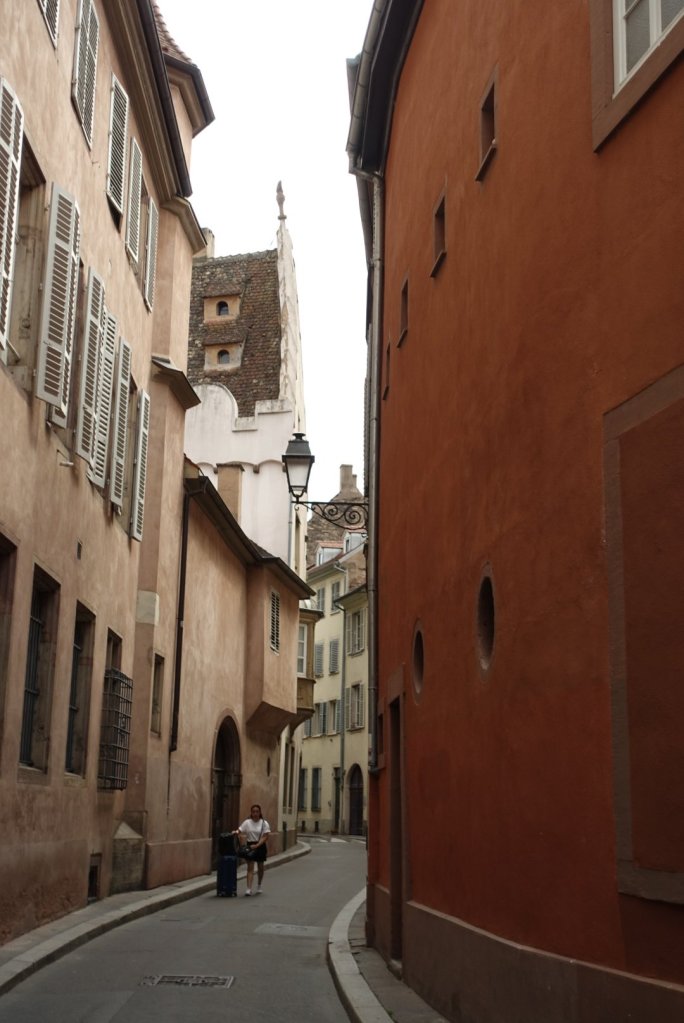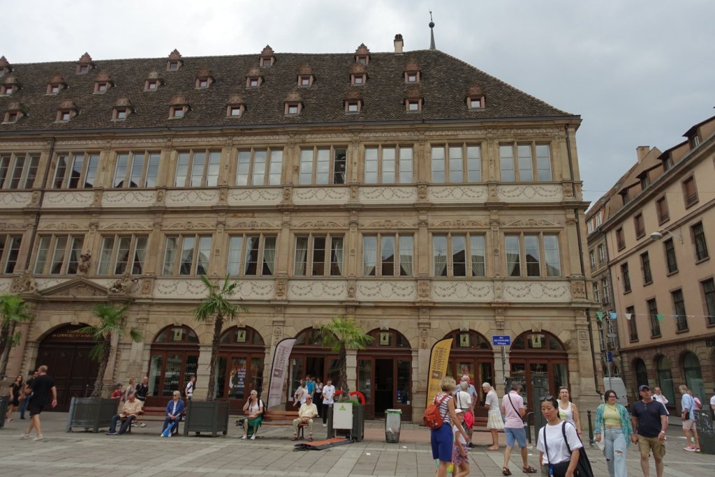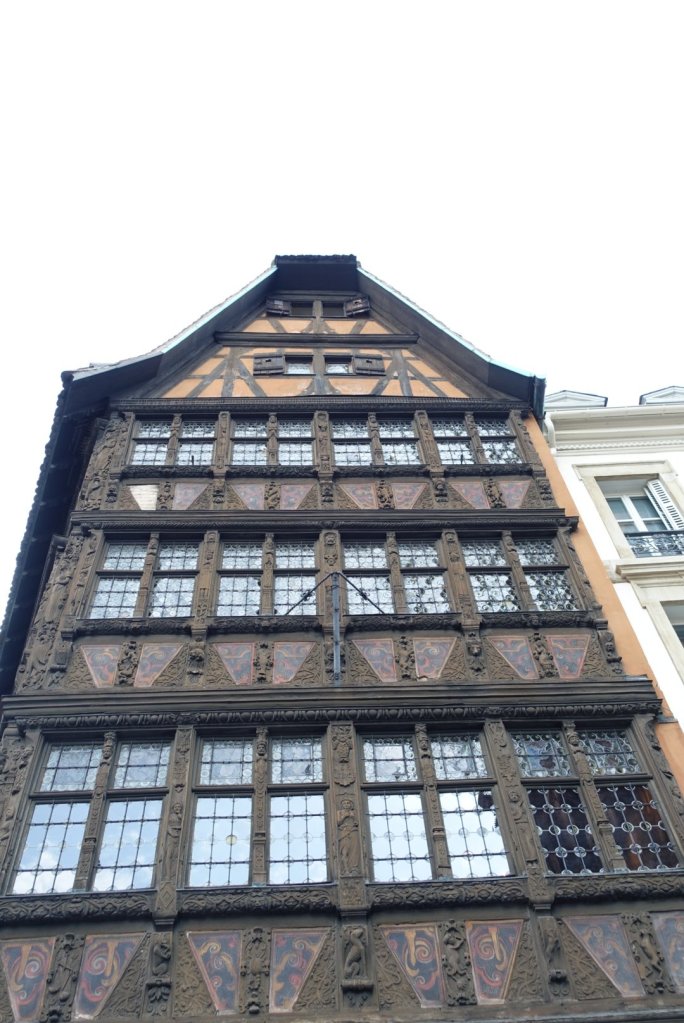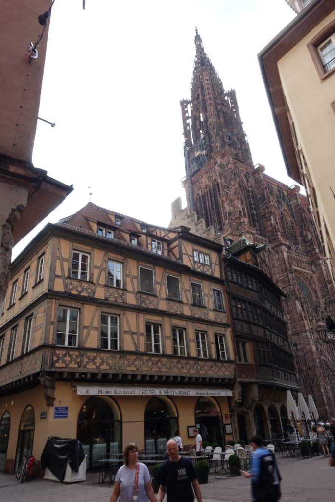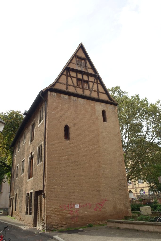 La vieille ville médiévale de Strasbourg se love dans les bras du Rhin Sur la gauche le Musée Tomi Ungerer illustrateur de livres pour enfants notamment Le Muséee historique de la ville Des tourtereaux Le Musée de l’oeuvre Notre-Dame sur la place du château à droite de la cathédrale du même nomPetit jardin du musée de l’oeuvre Notre-Dame dépositaire de sculptures et d’ouvrages originellement présents dans la cathédrale et épargnés par les révolutionnaires Le Palais du Cardinal de Rohan Soubise fils naturel de Louis XIV qui héberge le musée des beaux-arts, le musée des arts décoratifs et le musée archéologique. Il s’agit d’une construction comparable aux hôtels particuliers du 18ème siècle parisiens. L’architecte est Robert de Cotte.Le même hôtel particulier Rohan côté place du château dans le prolongement du musée de l’oeuvre Notre-Dame sur la place du château à droite de la cathédrale La rue des pucelles Incursion dans le 20ème siècle, c’était pour voir si vous suiviez !L’église protestante Saint Guillaume Rue des Tonneliers Le mari de Sophie Taeuber, tous 2 des artistes hors pair que j’adore Maison médiavale La même d’un autre point de vueLa maison Kammerzell, maison typique de Strasbourg datant du 16ème siècle La façade de ladite maison Kammerzell connue désormais aussi comme restaurant alsacien typique de qualité La cathédrale Notre-Dame place du château
