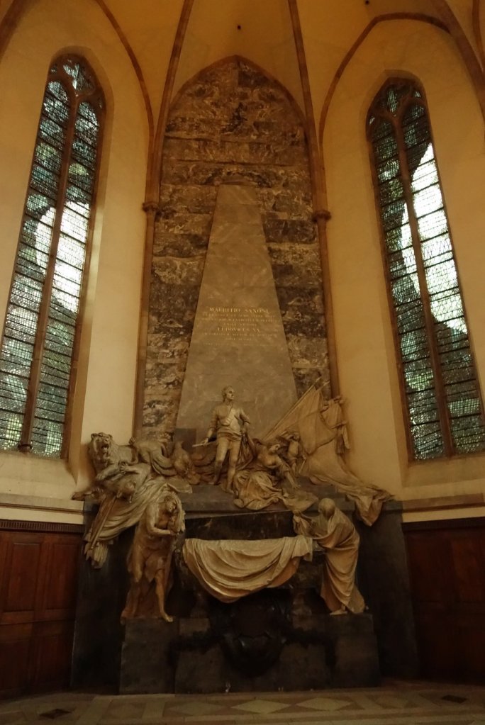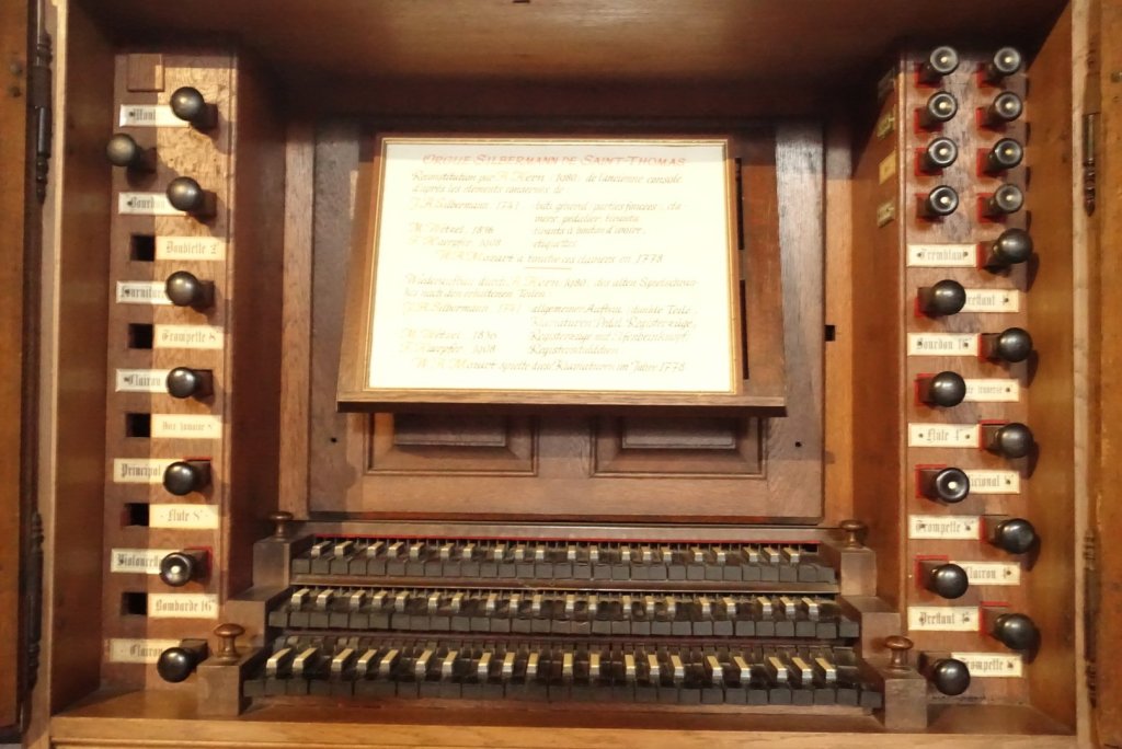Orgue du facteur Silbermann en état de conservation proche de l’original sur lequel joua Mozart en 1778Dans ce lieu de culte protestant Albert Schweitzer a créé un festival de musique dédié à BachLe mausolée du Maréchal de Saxe par le sculpteur Jean-Baptiste PigalleFaçade de l’église protestante Saint Thomas dont les cloches sonnent 5 min avant celles de la cathédrale pour éviter le risque d’incendie selon la légende. Les fondations datent de l’époque carolingienne et la façade du 13 ème siècle.