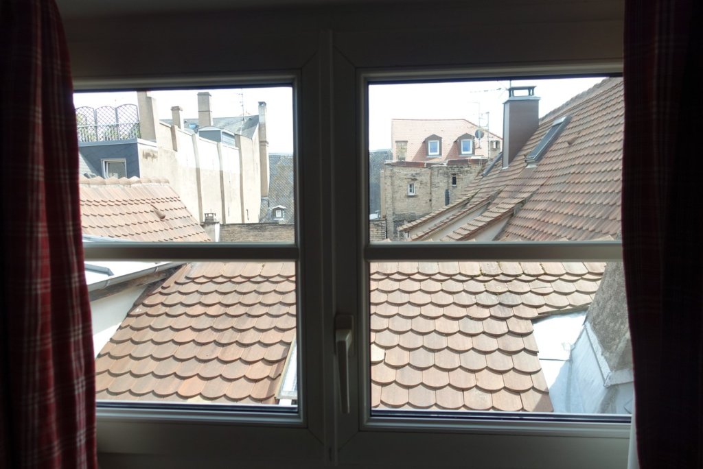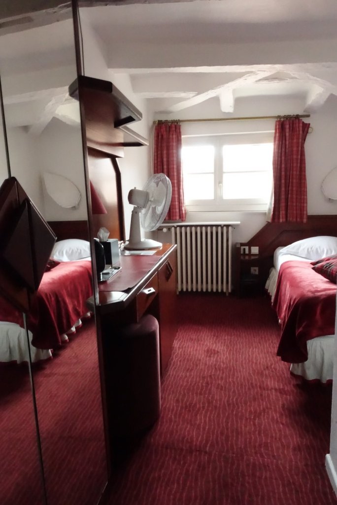 Tout près de la cathédrale, j’ai rdv dans un petit nid, douillet, au 4ème étage, sous les toits, dans lequel il fait un petit peu très chaud, sans le ou la ventilo ! Dotée d’un équipement fonctionnel, propre et rétro, je me murmure, pour sûr, cette chambre est un avant-goût du paradis 😉