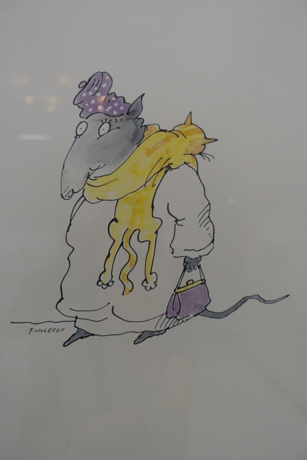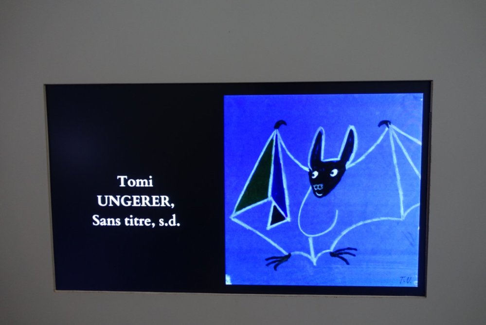Tomi Ungerer est un illustrateur célèbre de livres pour enfants qui a réalisé des affiches et travaux publicitaires mais aussi des livres de dessins magnifiques avec de la finesse, beaucoup d’engagement et de dérision. L’exposition Catherine Meurisse dessinatrice de Charlie Hebdo et auteur de BD autobiographiques suite aux attentats a toute sa place dans ce lieu. Les 2 illustrateurs attirent petits et grands…Les animaux étaient un des modes d’expression favoris de Tomi Ungerer, cf Gustave Doré, Grandville, Benjamin Rabier… notamment leurs illustrations des fables de La Fontaine.