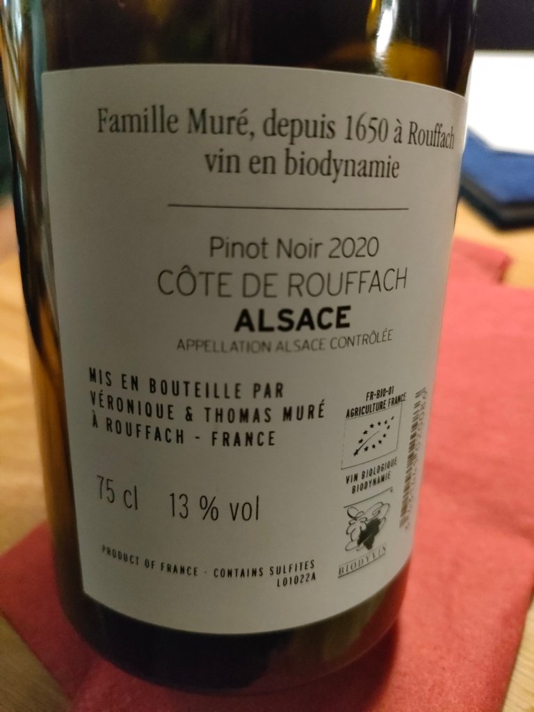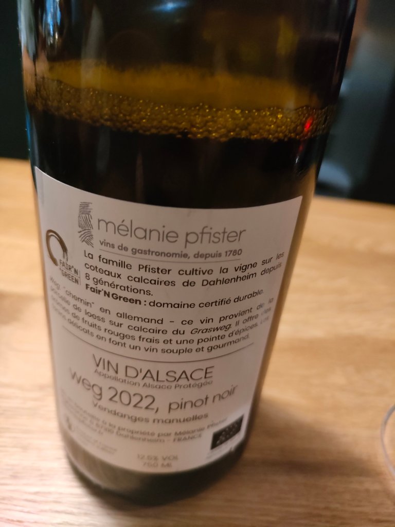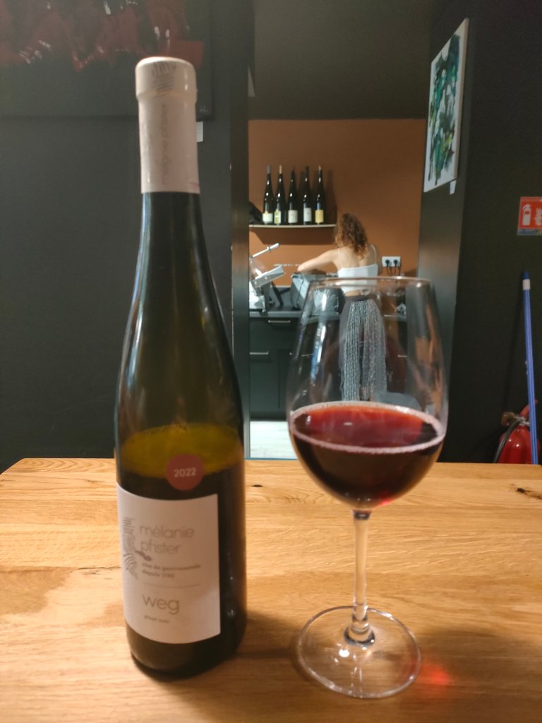 Mélanie Pfister est une des rares vigneronnes en Alsace et son pinot noir sort du verre droit, long, léger, profond, poivré et je suis bourrée…