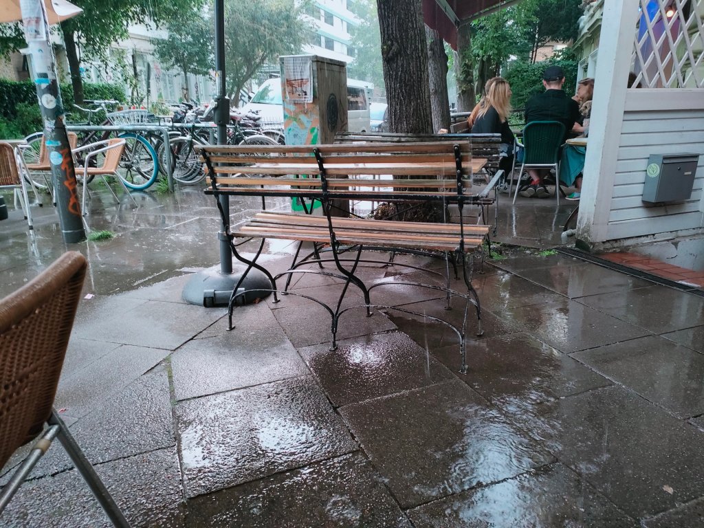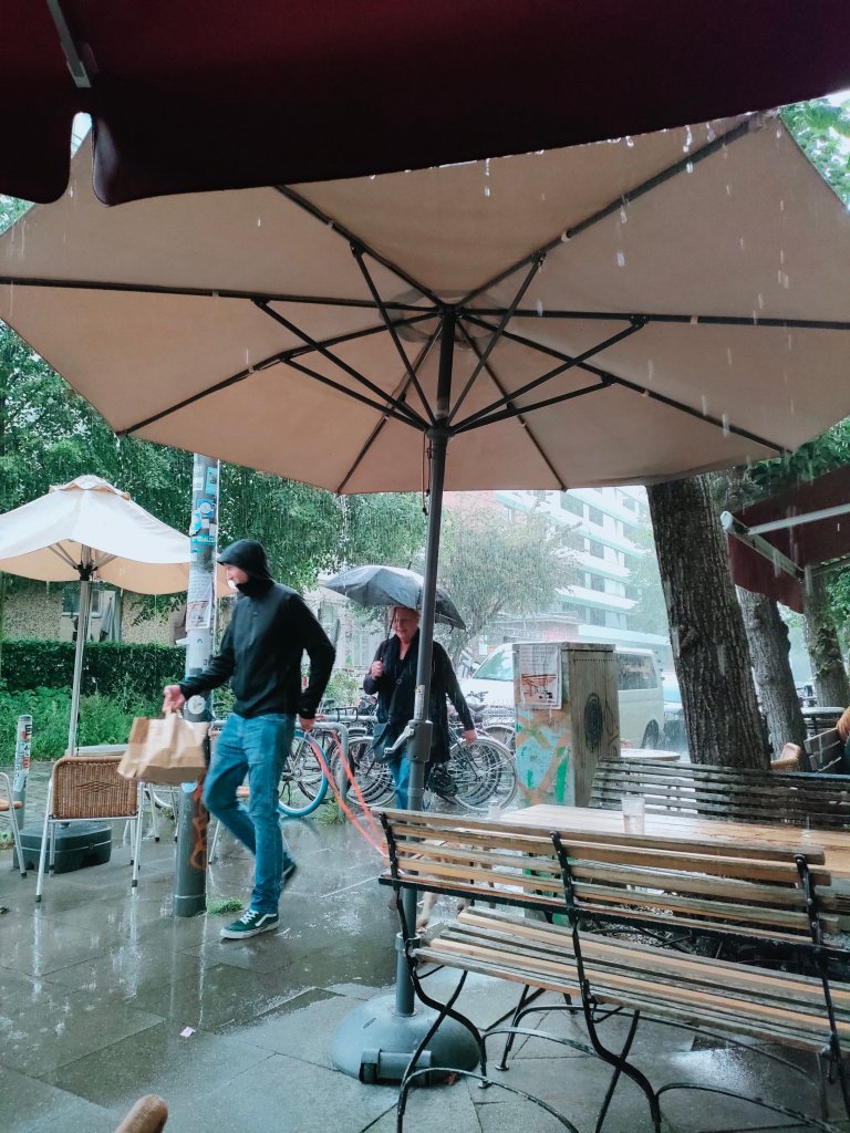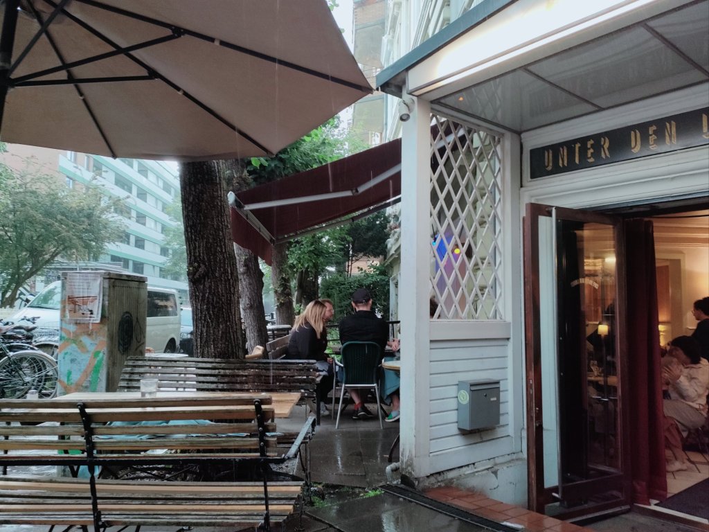 Dans ce restaurant italien, j’ai pris une bière sur la terrasse, protégée par un parasol, nous étions peu à résister. Après la bière, je suis rentrée à l’intérieur pour me réchauffer et manger de la pasta.