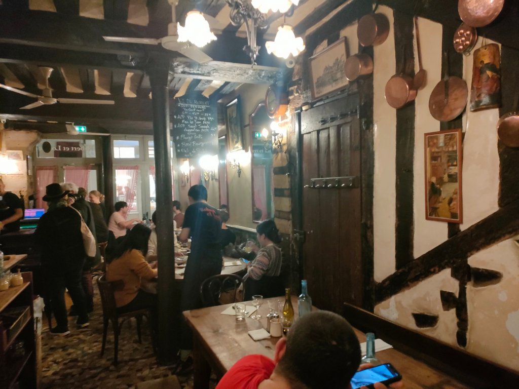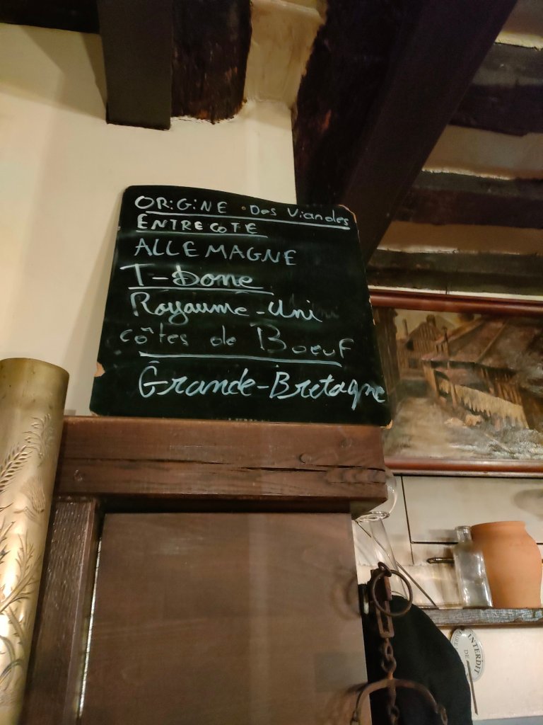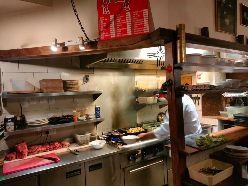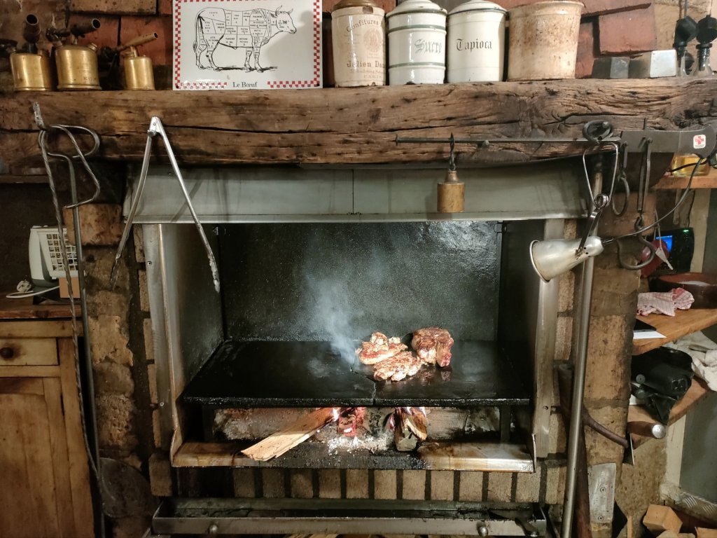 Je vous le donne en mille Robert et Louise fut le restaurant du bonheur. Nous étions installés à côté de la cheminée, sur un banc en bois et attablés comme à la campagne en face du chef et de son aide de camp. Les grillades de viande (boudin noir, entrecôte, côté d’agneau…) nous faisaient de l’oeil. C’était très bon, les pommes de terre sautées fondaient sous la langue.