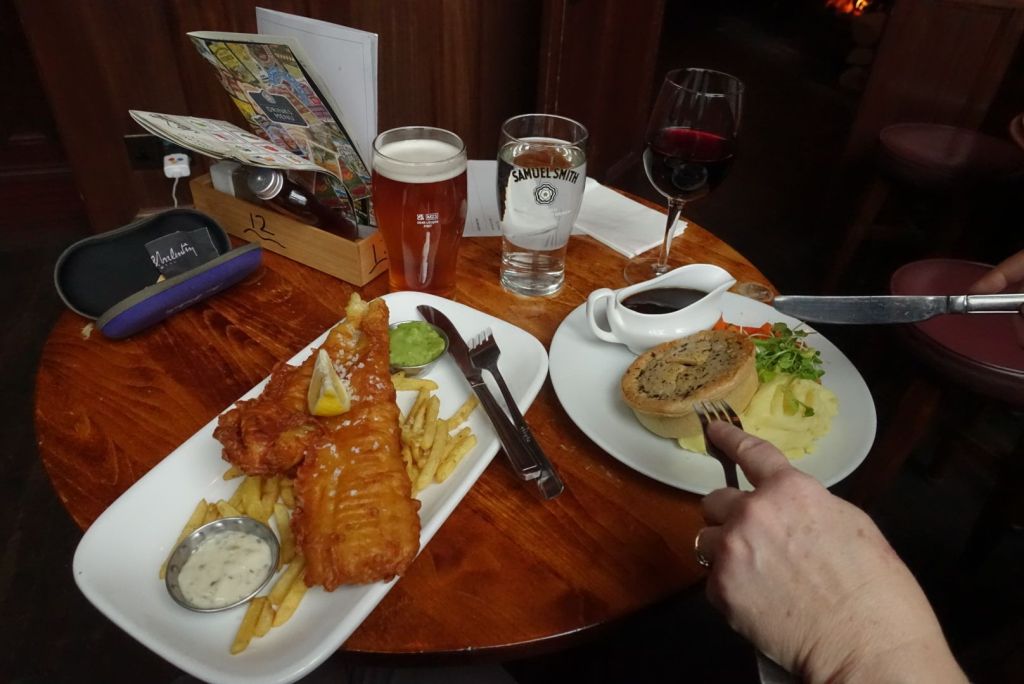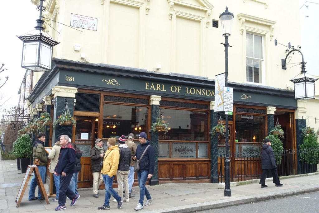 Avec mon amie Anne C, nous marchons et prenons le bus impérial. Hier, nous avons promené nos guêtres à Notting Hill, Portobello et Chelsea, à mes yeux parmi les plus beaux quartiers de Londres. Et puis nous avons déjeuné respectueusement une steak pie et un fish and chips délicieux et copieux avec une bonne real Ale bitter dans un pub avec cheminée très typique et chaleureux.