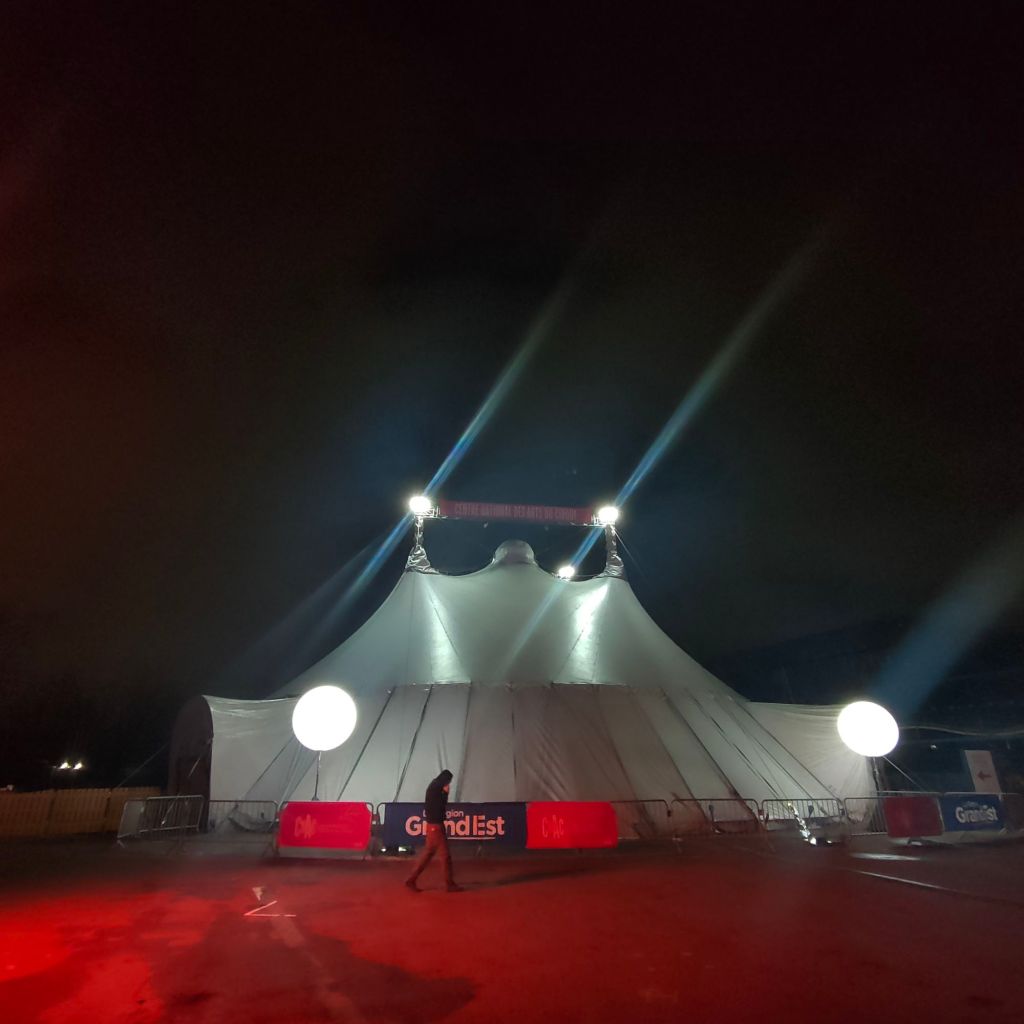 Après une semaine de folie qui a défait et perdu le fil des folles journées de Nantes, j’avais rendez-vous avec un spectacle de cirque, à l’espace Chapiteaux du parc de la Villette. Dans la nuit noire, le ciel voilé me faisait du pied et me chantait tu es là mais qu’est-ce que tu fous ici, petit roitelet ? Un égarement sans doute, un grain de folie, ou tout simplement la sortie du tram à la Porte de Pantin qui m’avait tendu la main et ouvert les ailes. Ainsi, j’ai été attirée tour à tour par les néons du centre national supérieur de la musique et de la danse, de la halle de la Villette et du café de la cité de la musique avant de m’enfoncer dans un paysage de bitume et de structures acier, sous une voûte étoilée et laiteuse. Je suivais la brune, la lune, et les nuages en errance. Pimprenelle et Nicolas me murmuraient tout bas. J’ai traversé le canal de l’Ourcq, je l’ai enjambé à pas de géant avec mes Doc Martens Orange, seule au milieu d’un silence profond, tel le Petit Poucet égrenant ses cailloux sortis de ses poches. C’était long, et puis mes yeux se sont arrêtés, scotchés à un immense chapiteau blanc immaculé quand les frissons m’ont traversé la peau. Cette caresse éphémère et salutaire, je l’ai apprivoisée ainsi que mes larmes de crocodile, et l’enfant que je suis s’est mise à sourire. L’émerveillement fut total dès cet instant.