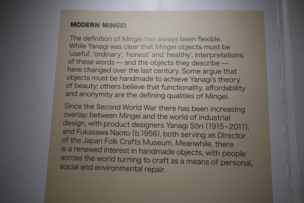 Pas étonnant qu’une expo sur le mouvement Mingei japonais ait trouvé sa correspondance britannique dans cette galerie. Soētsu Yanagi leader du Mingei était aussi un penseur, un écrivain, un dessinateur et un fabricant, qui a redonné ses lettres de noblesse à l’artisanat japonais après la 2ème guerre mondiale.