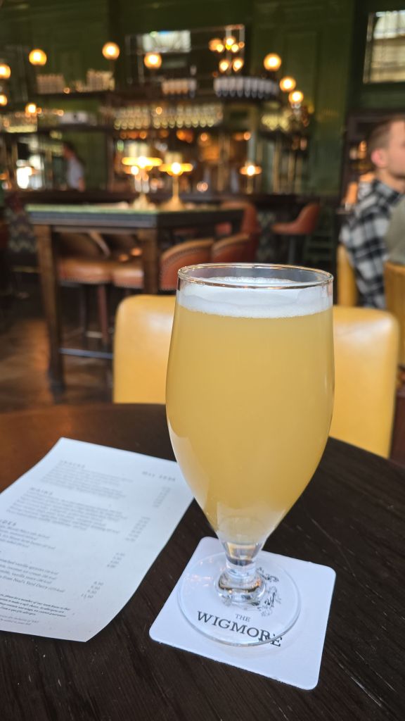 Le Wigmore Pub toujours aussi top. Frites, Scotch eggs au masala…et une IPA bien cloudy.