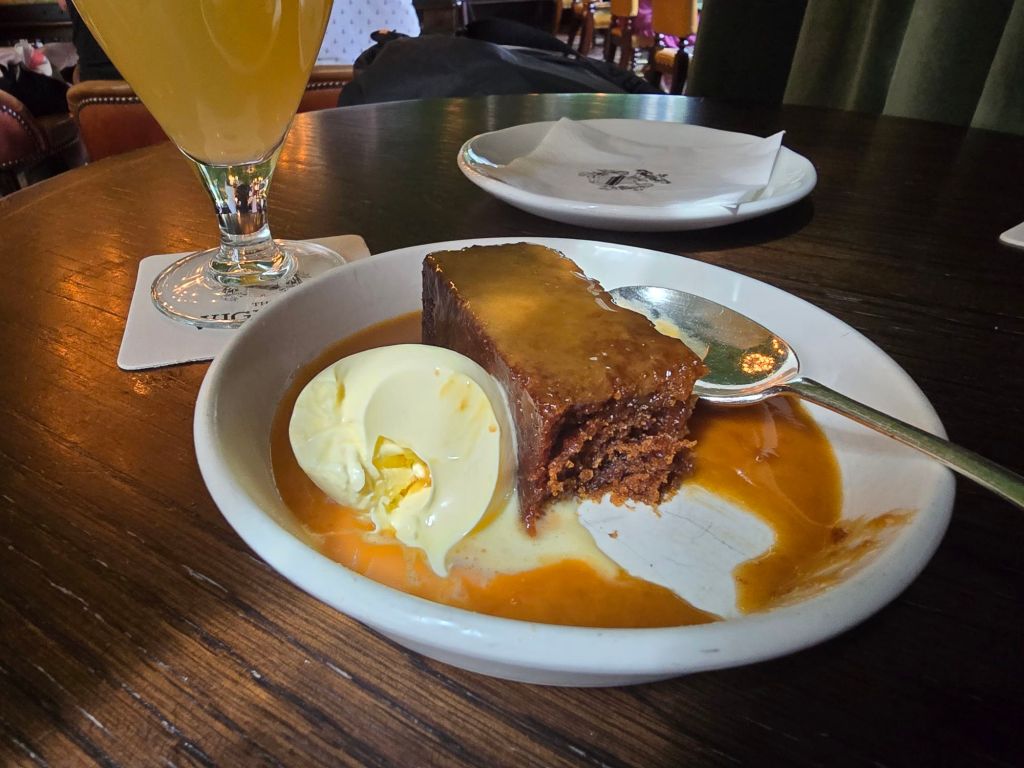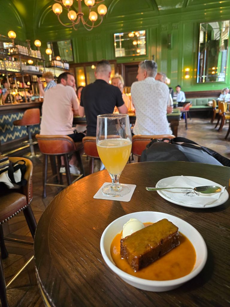 Au Wigmore Pub, j’aime les serveurs, le lieu et les saveurs des plats : les starters et les main courses sans oublier les deserts, Just AMAZING, une tuerie. Le pudding tiède au caramel et la boule de glace à la vanille…No comment, vraiment très très bon.